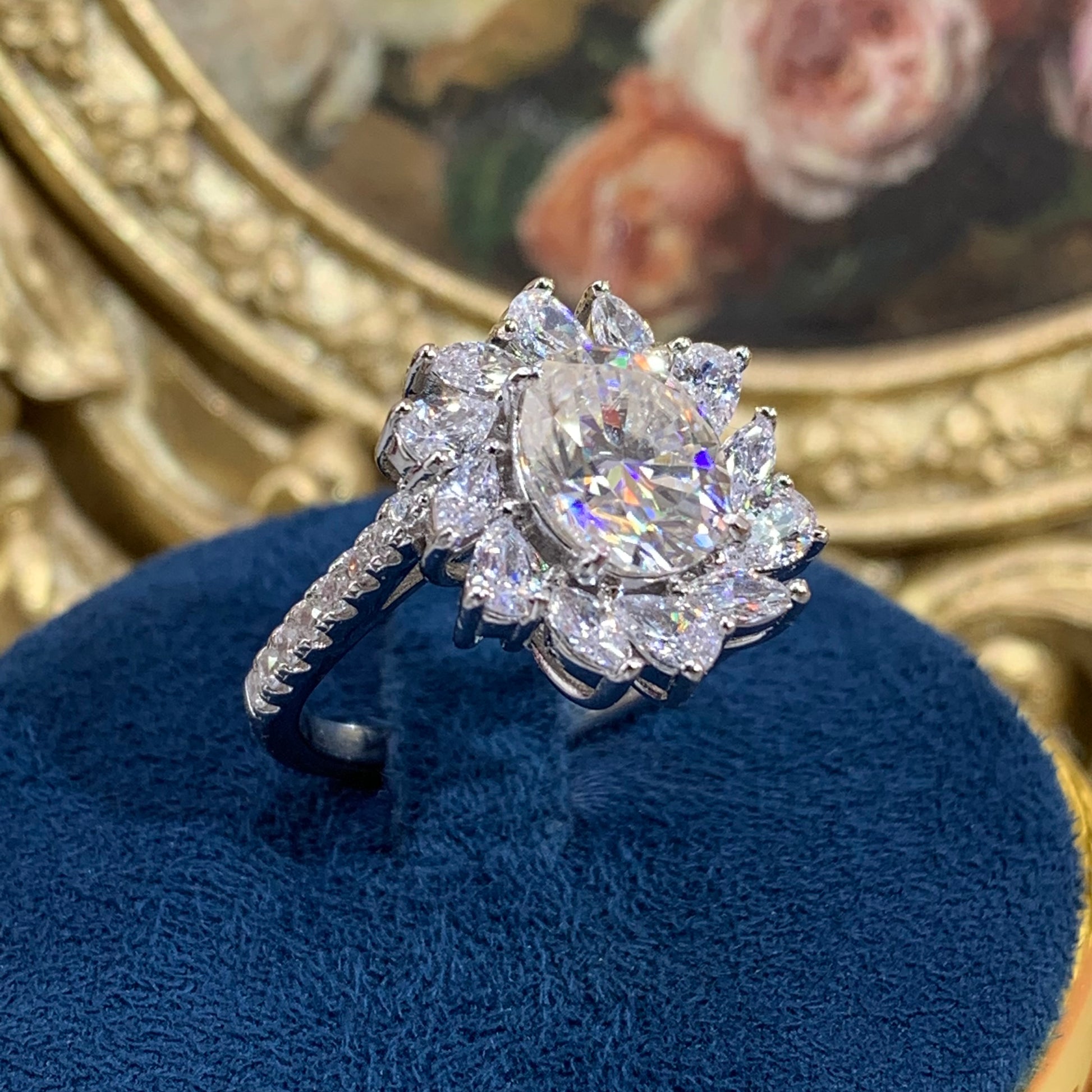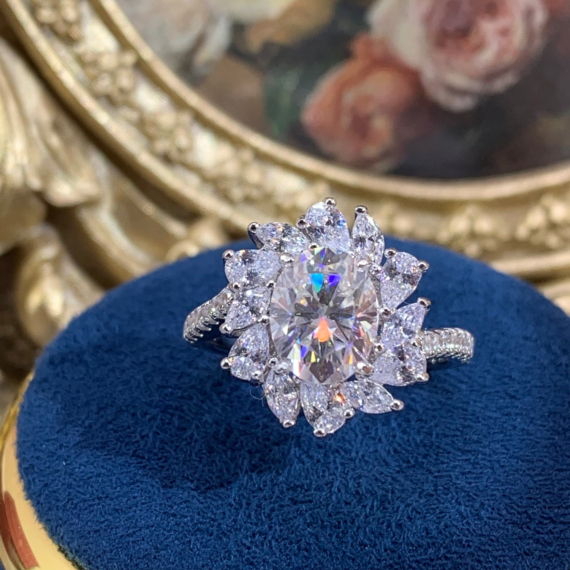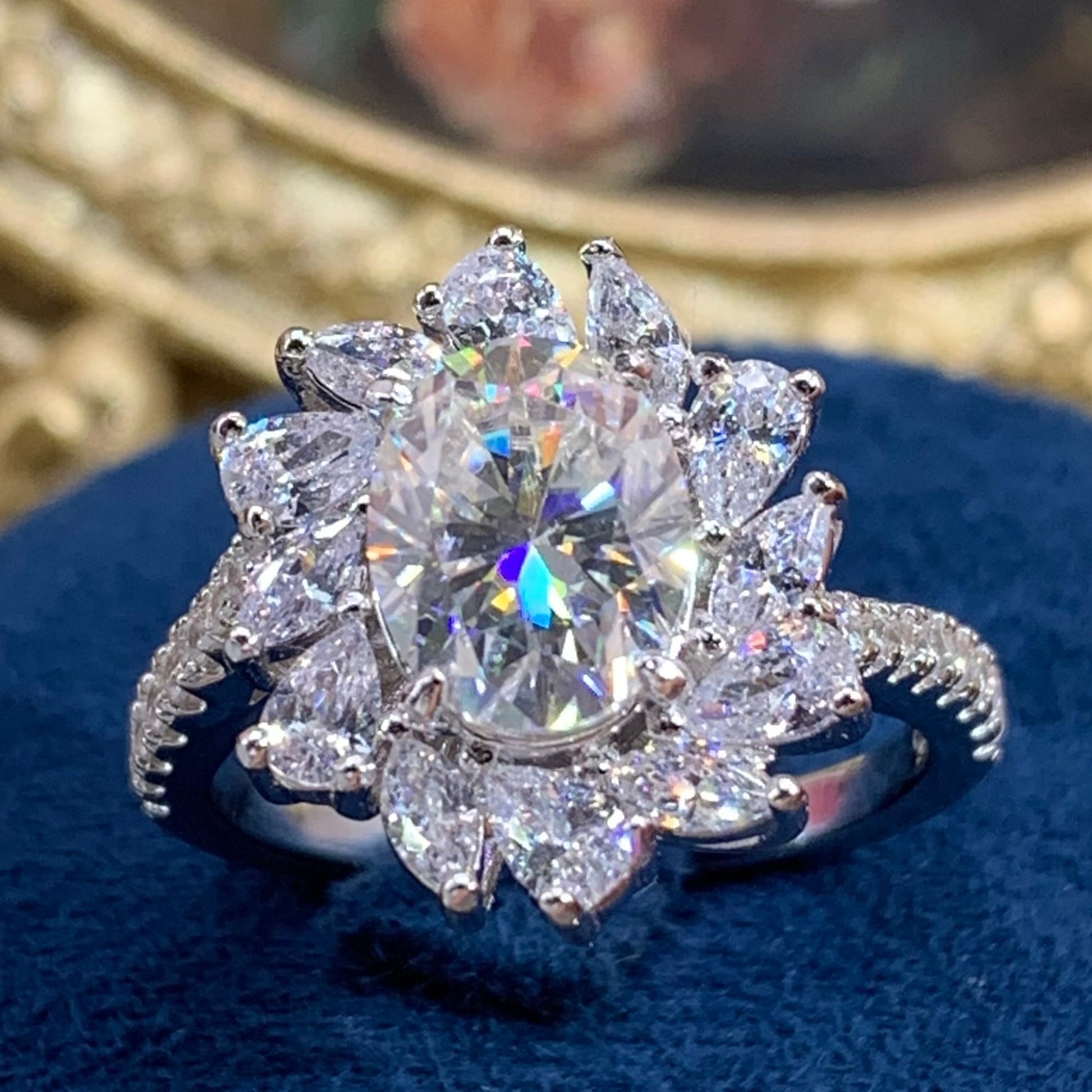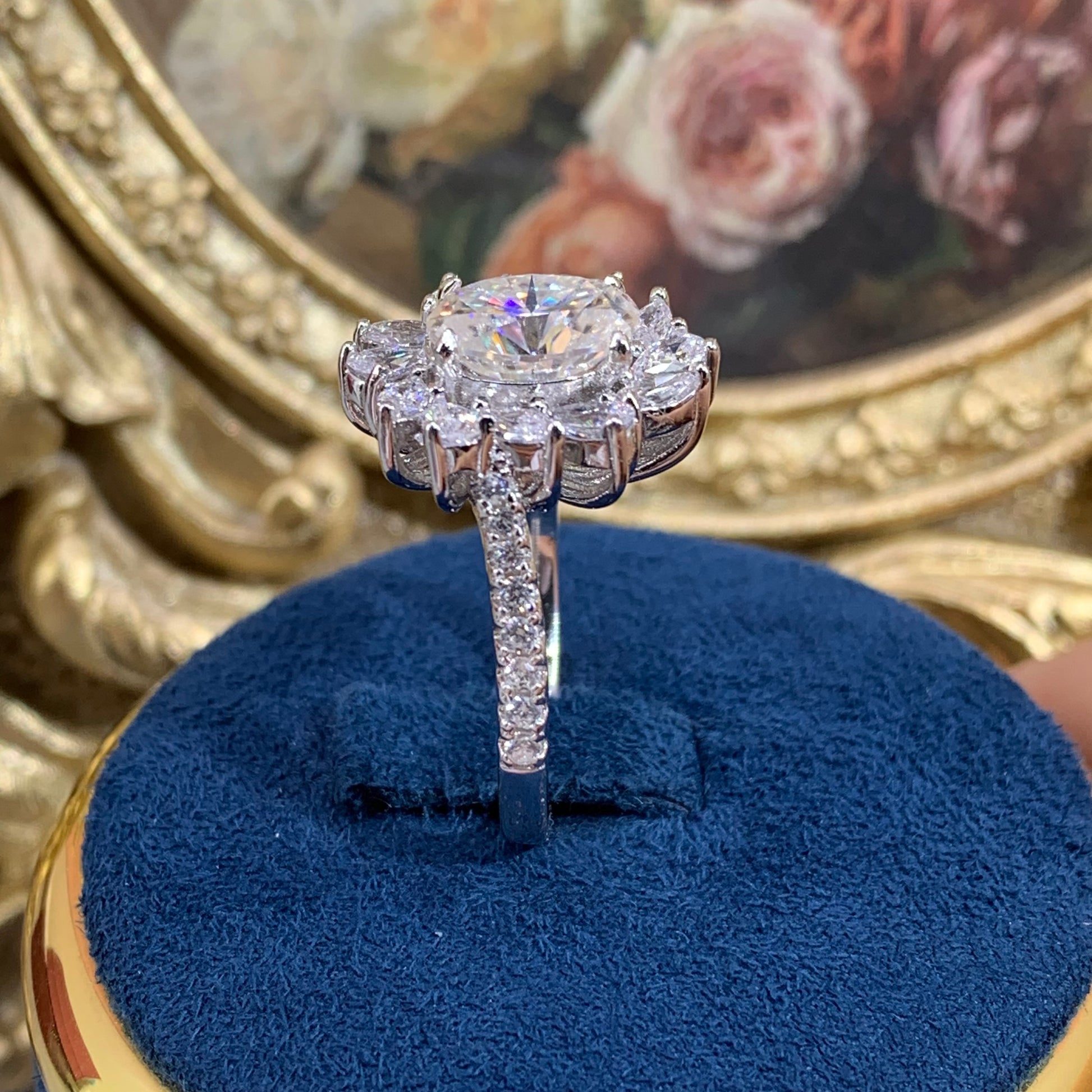 (Carnation) 「Buy 1 get 2 v band or 1 Necklace for free」2CT Moissanite 925 Sterling Silver Ring