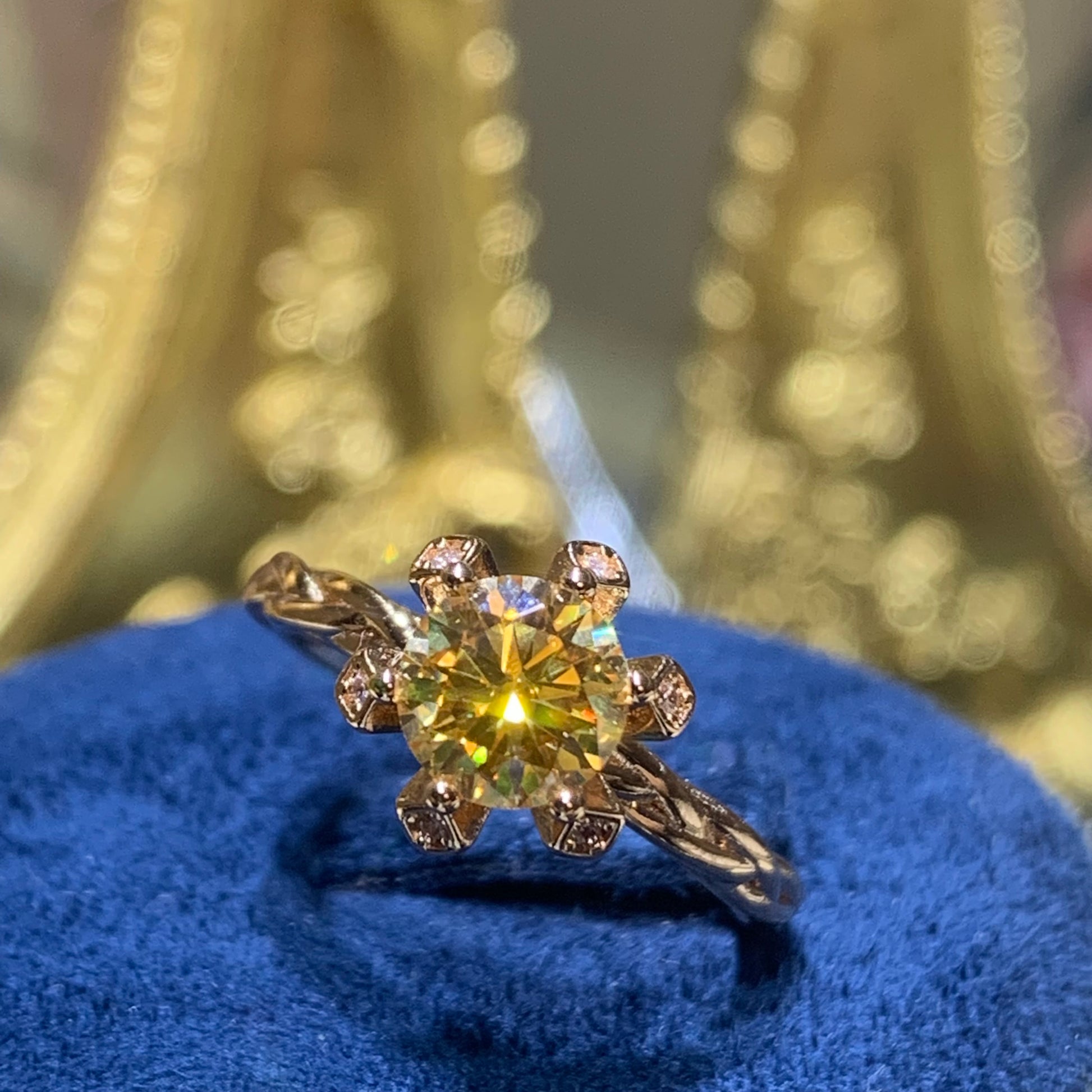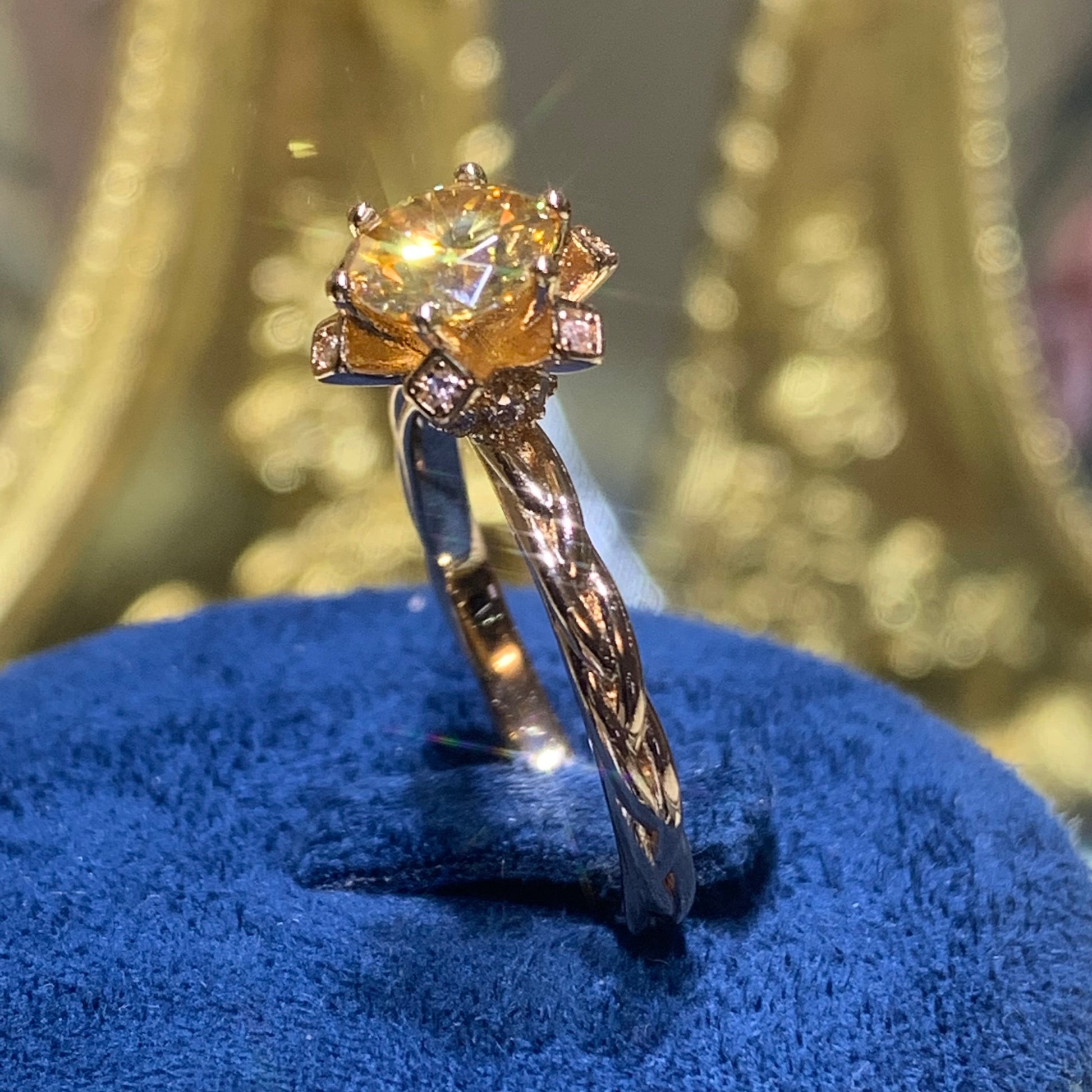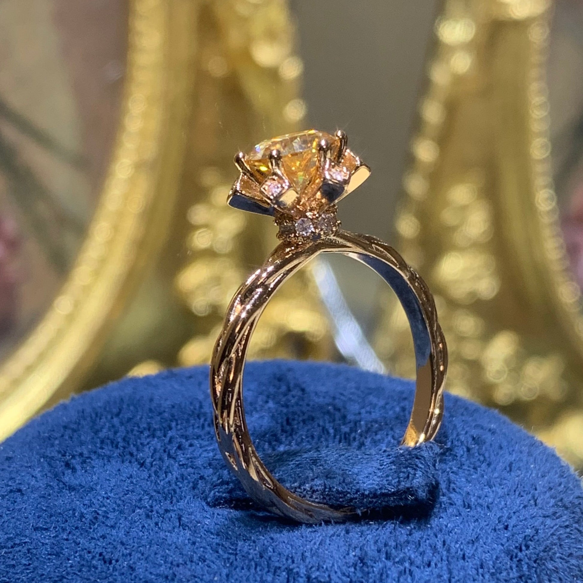 (ASHA) 「Buy 1 get 1 band ring for free」1CT 18K gold plated Moissanite ring