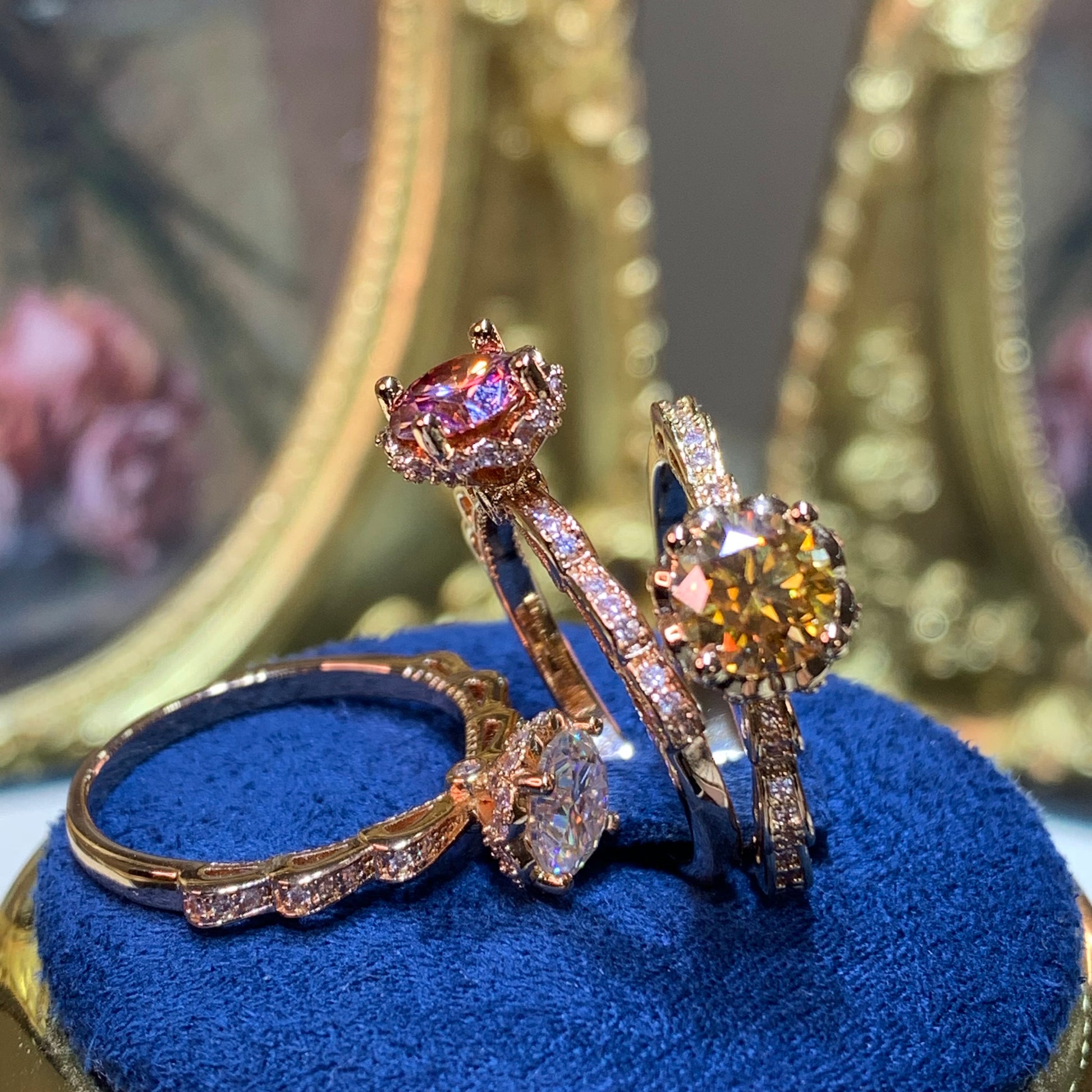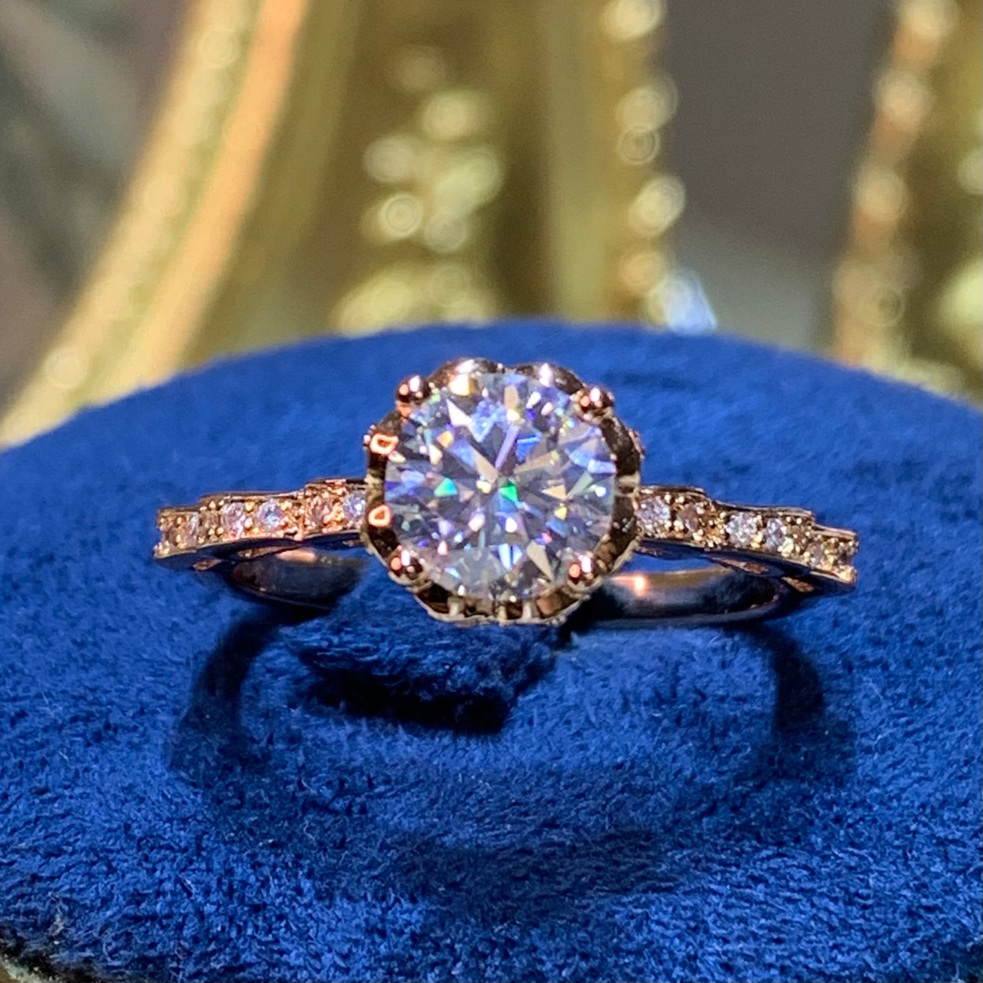 (Athena) 「Buy 1 get 1 band ring for free」rose gold 18K plated 1CT Moissanite ring