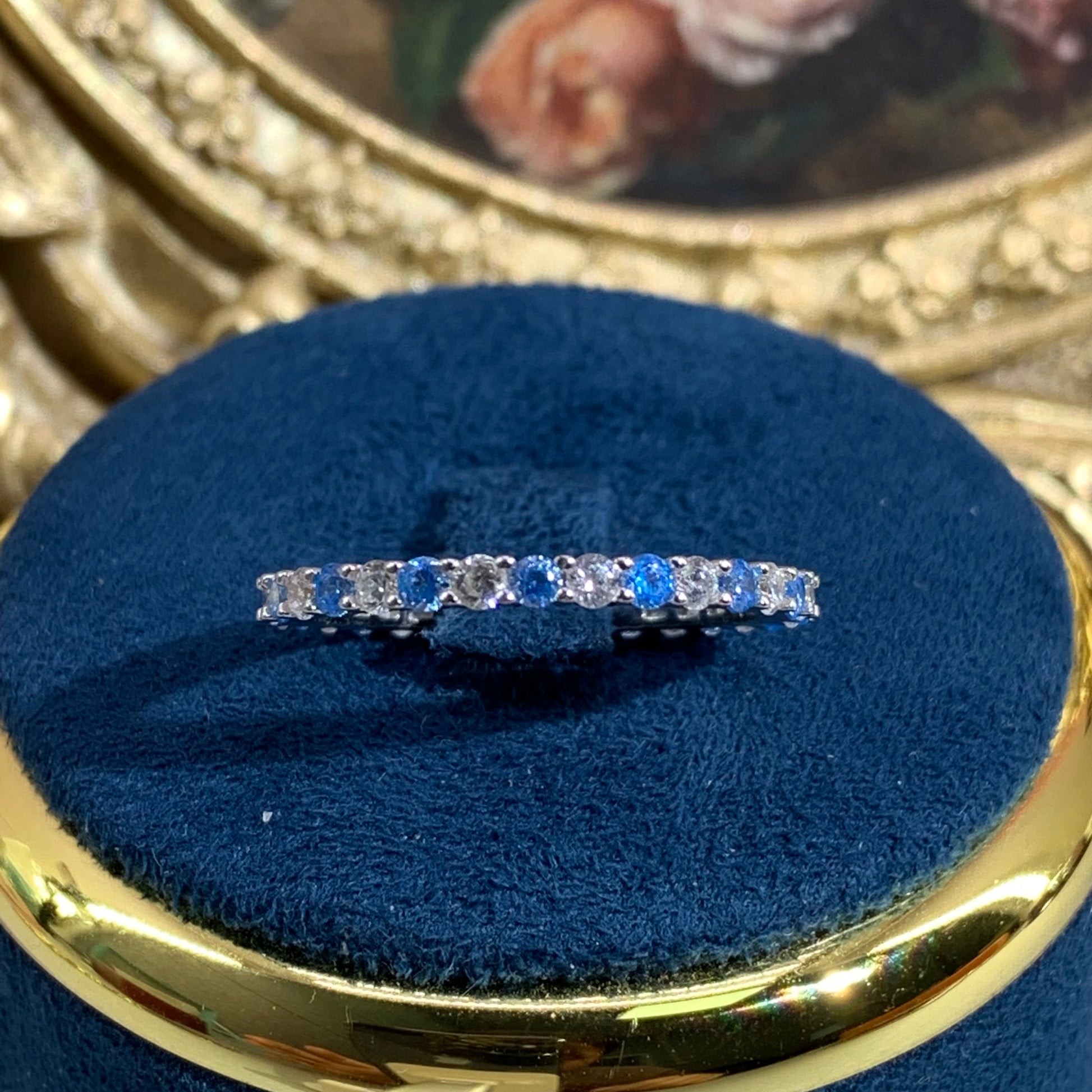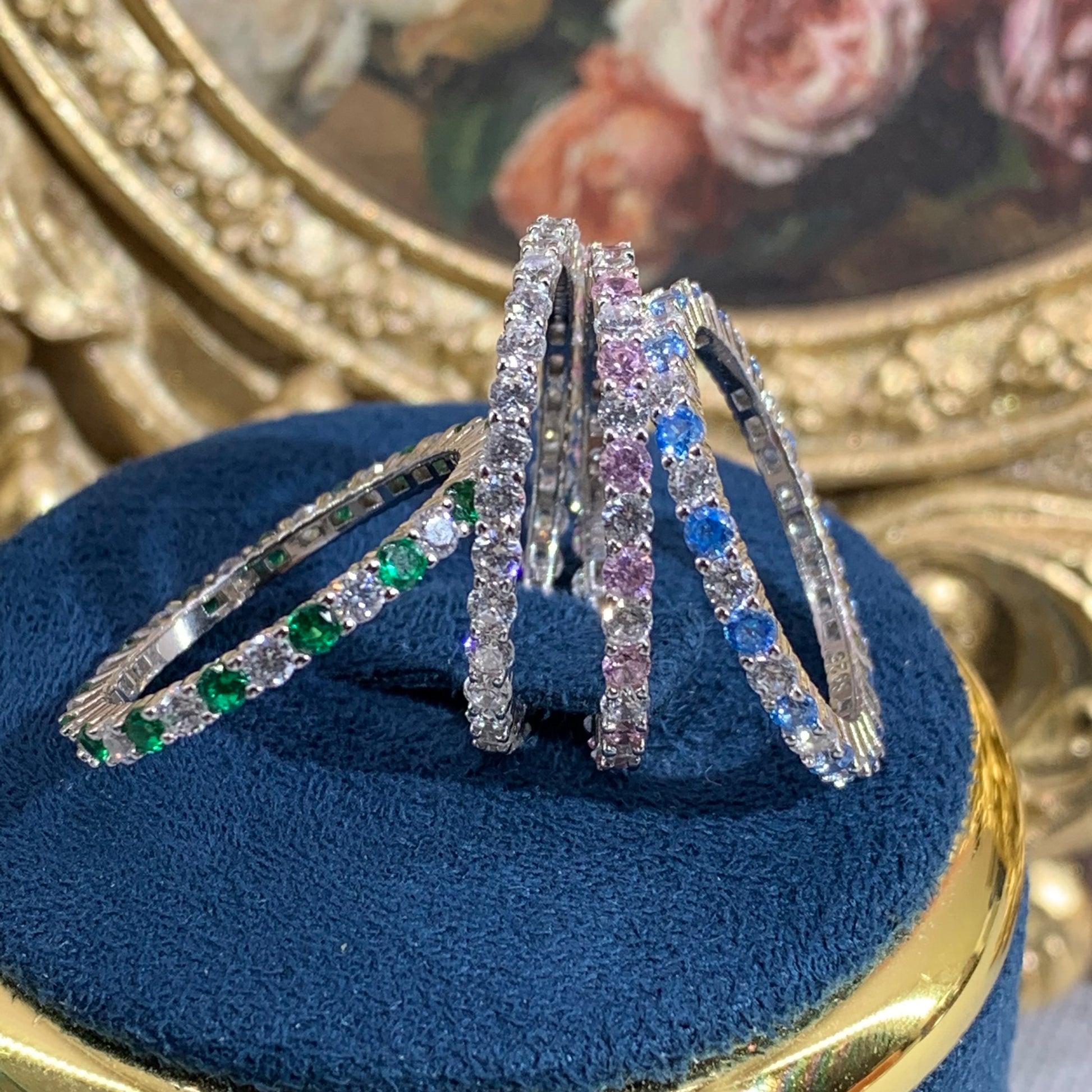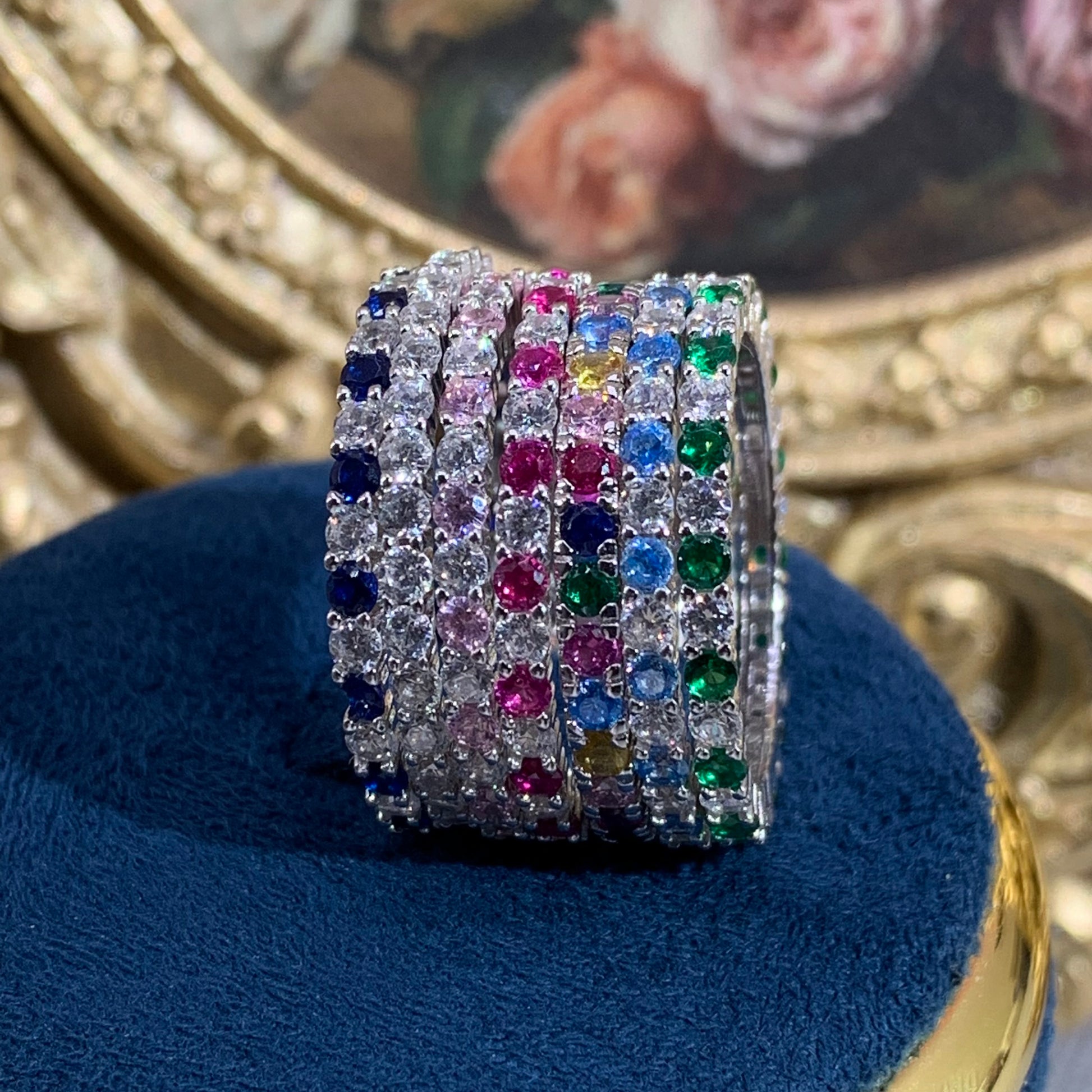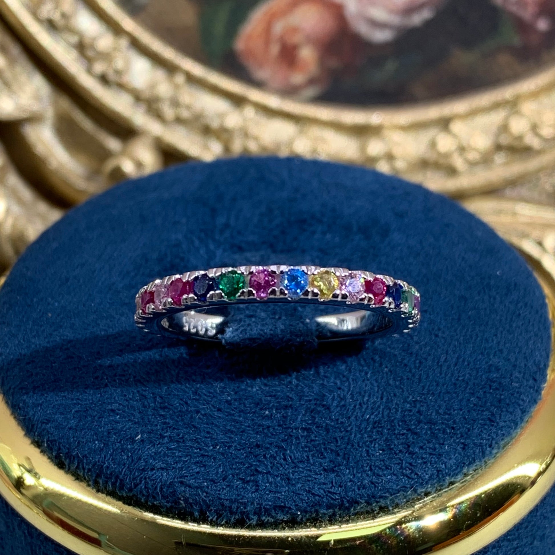 (Colorful) Artificial gemstone 925 Sterling Silver band ring