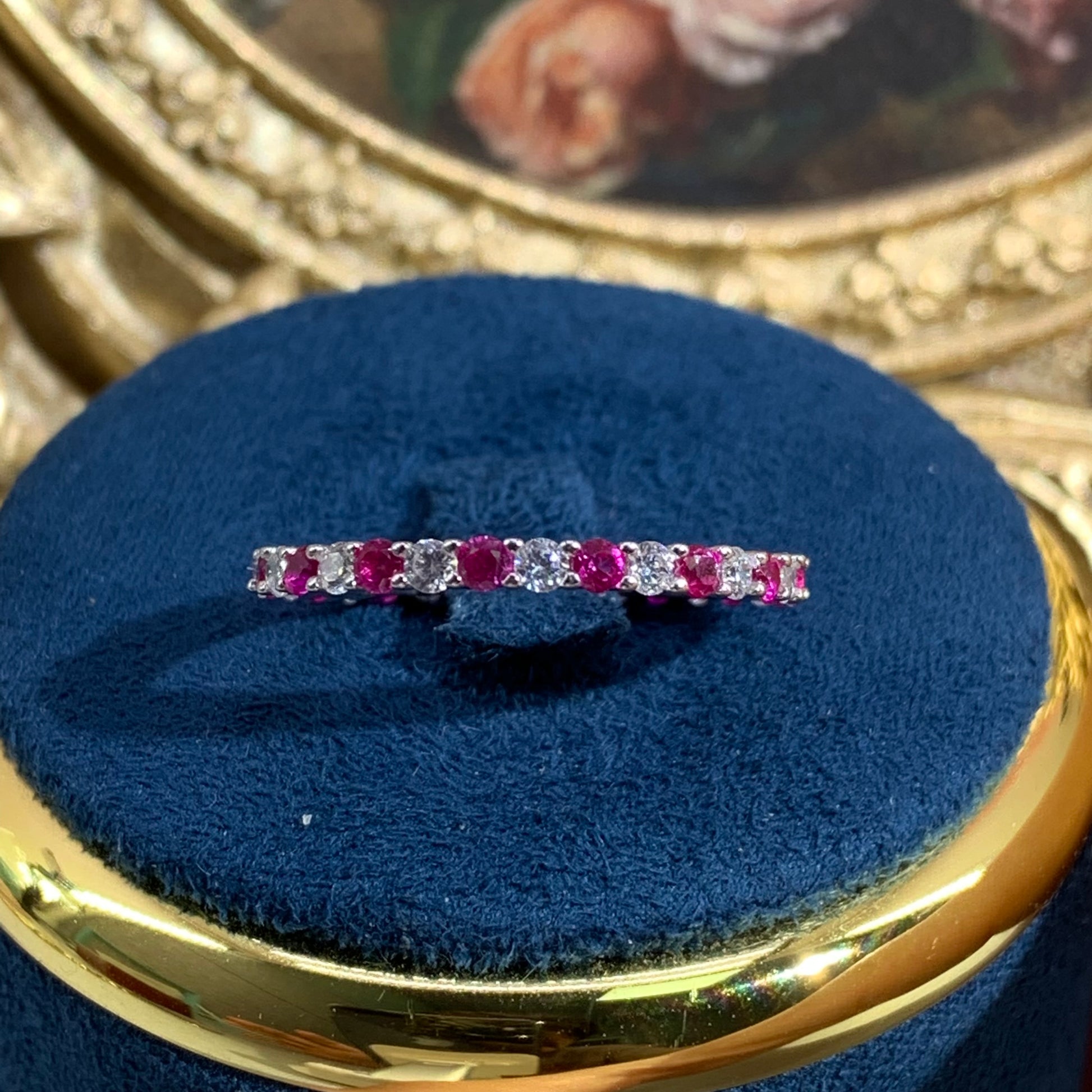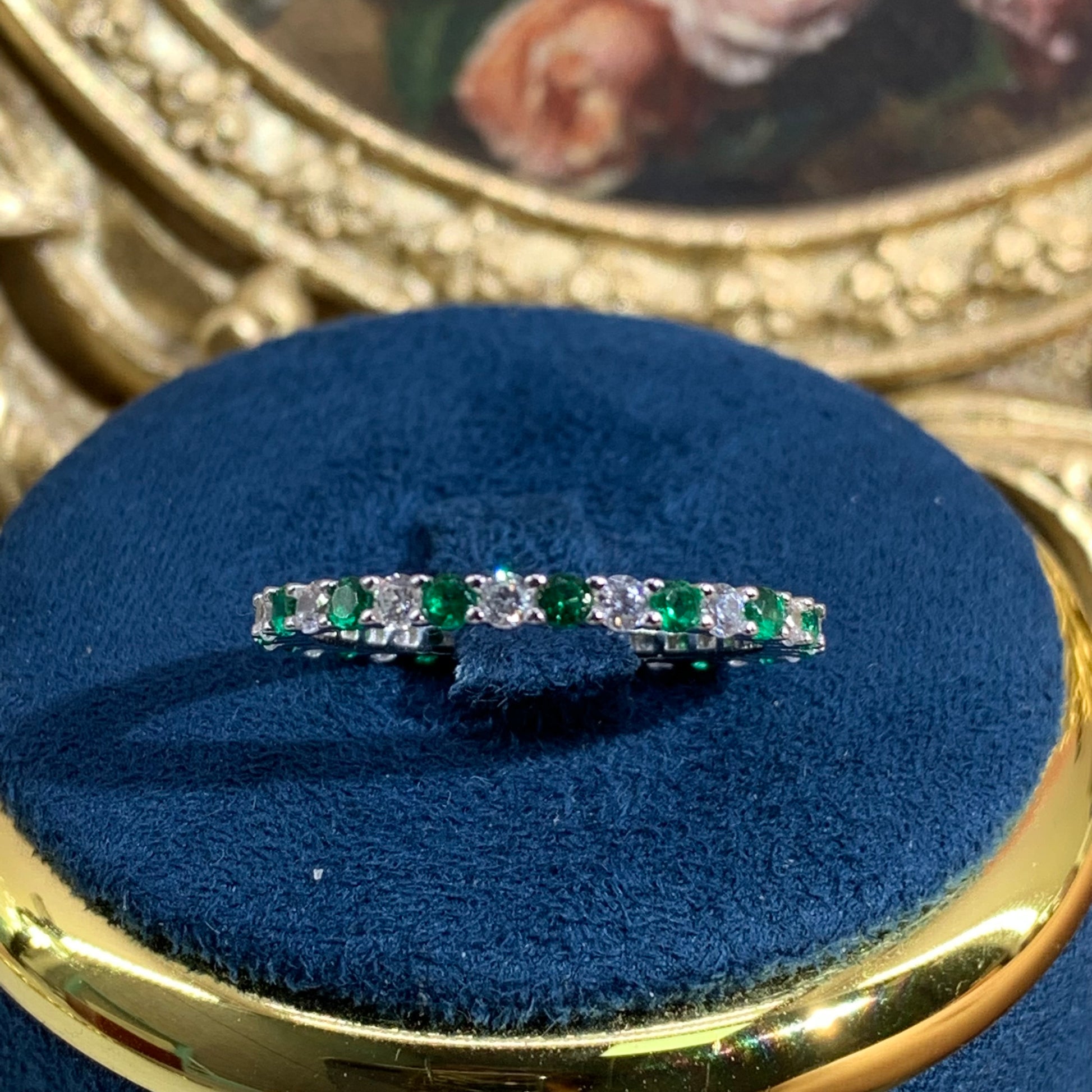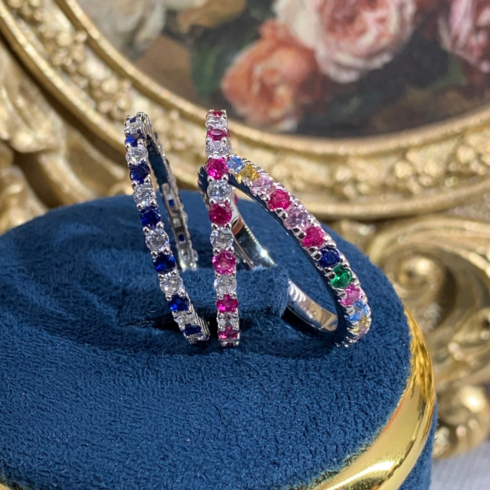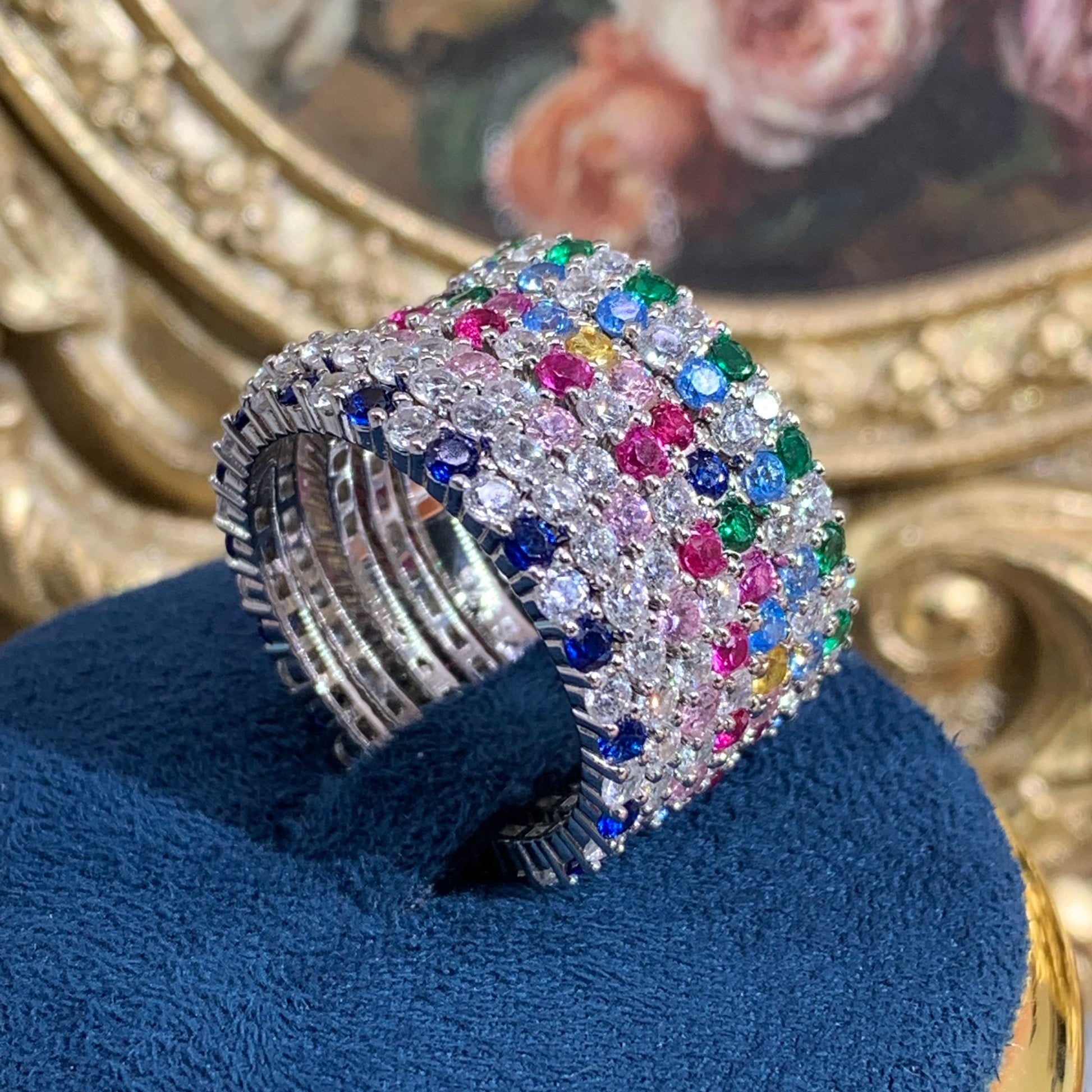 (Colorful) Artificial gemstone 925 Sterling Silver band ring