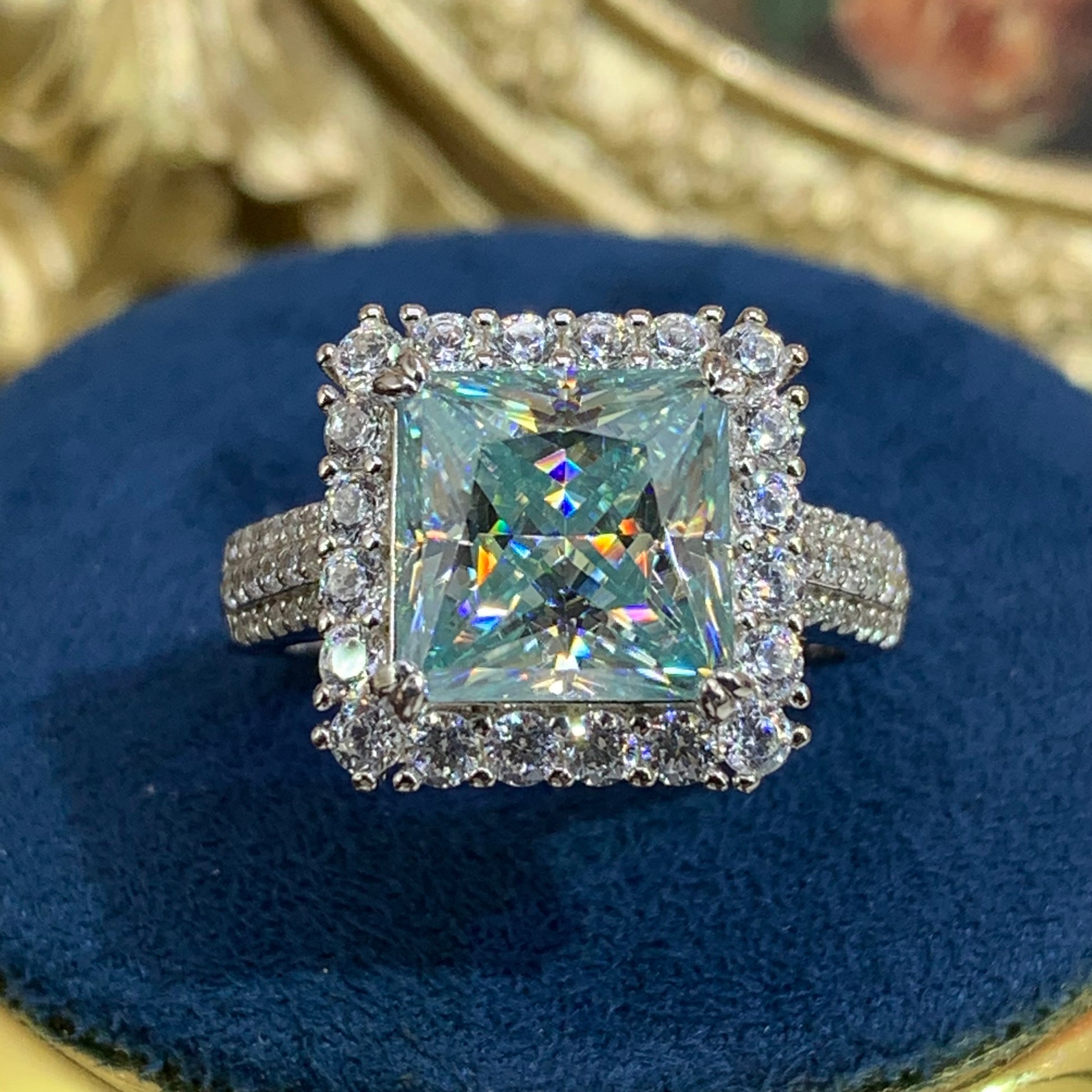 (Enid) 「Buy 1 get 2 band ring or necklace for free」4CT Moissanite 925 Sterling Silver Ring Princess cut