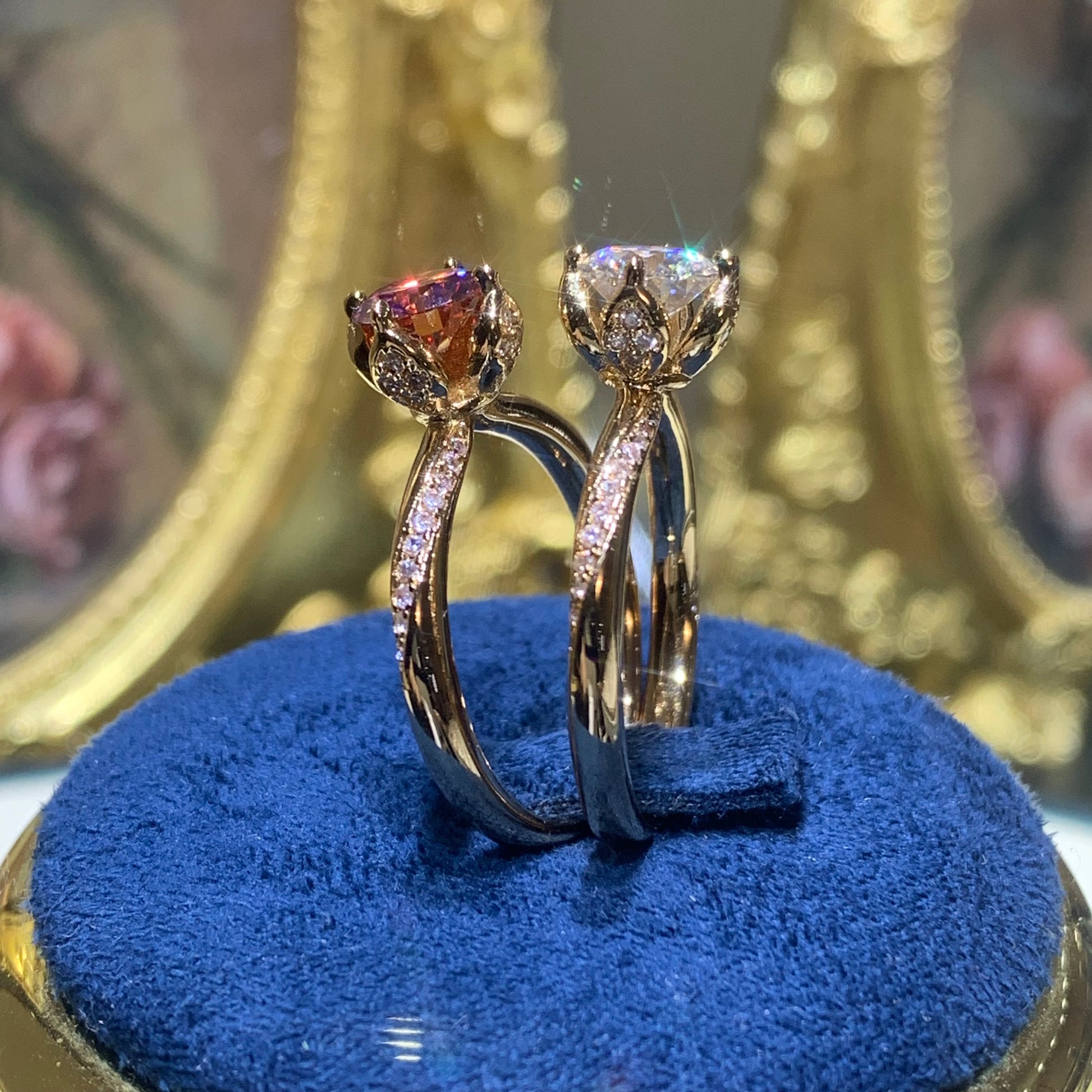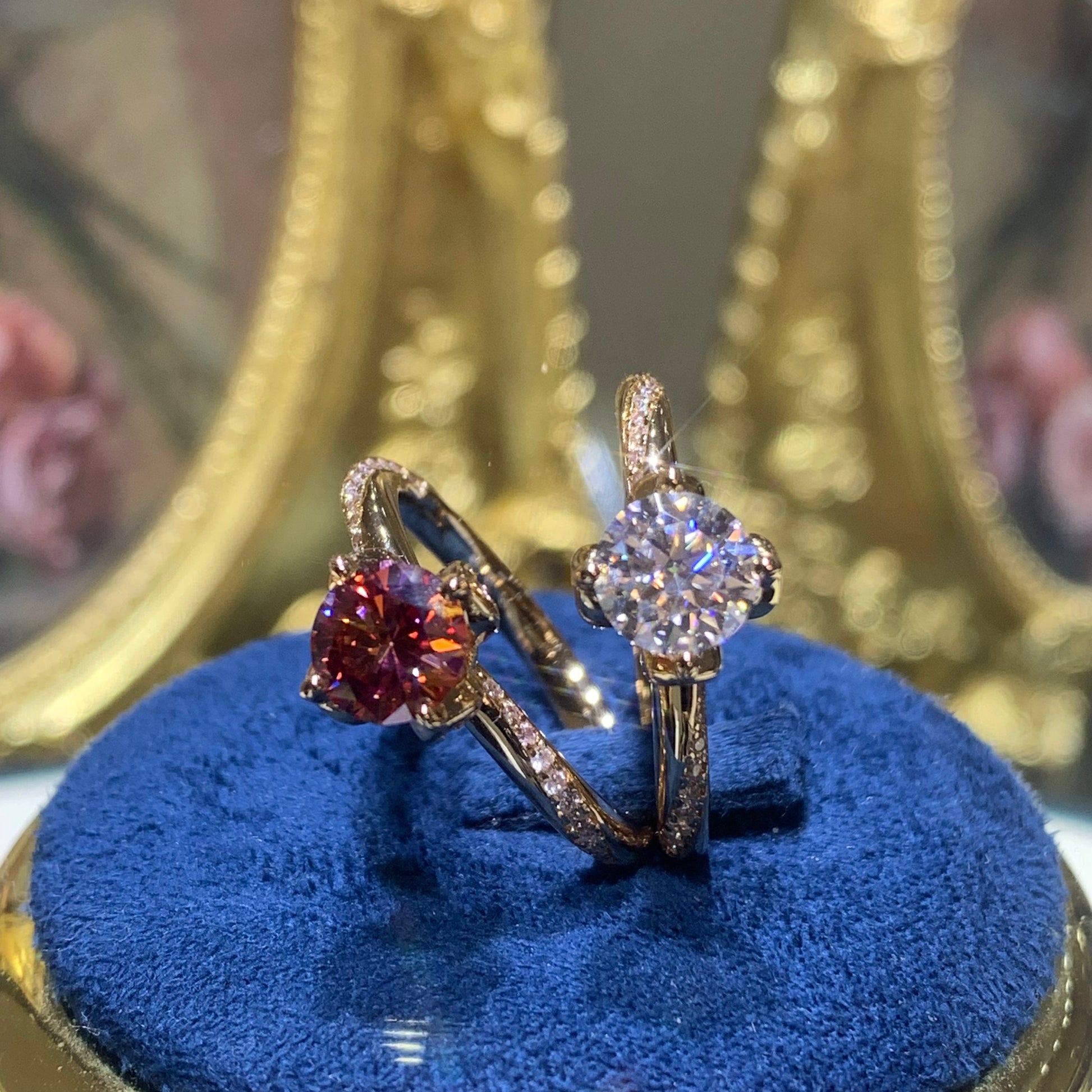 (Gardenia) 「Buy 1 get 1 band ring for free」1CT 18K gold plated Moissanite ring