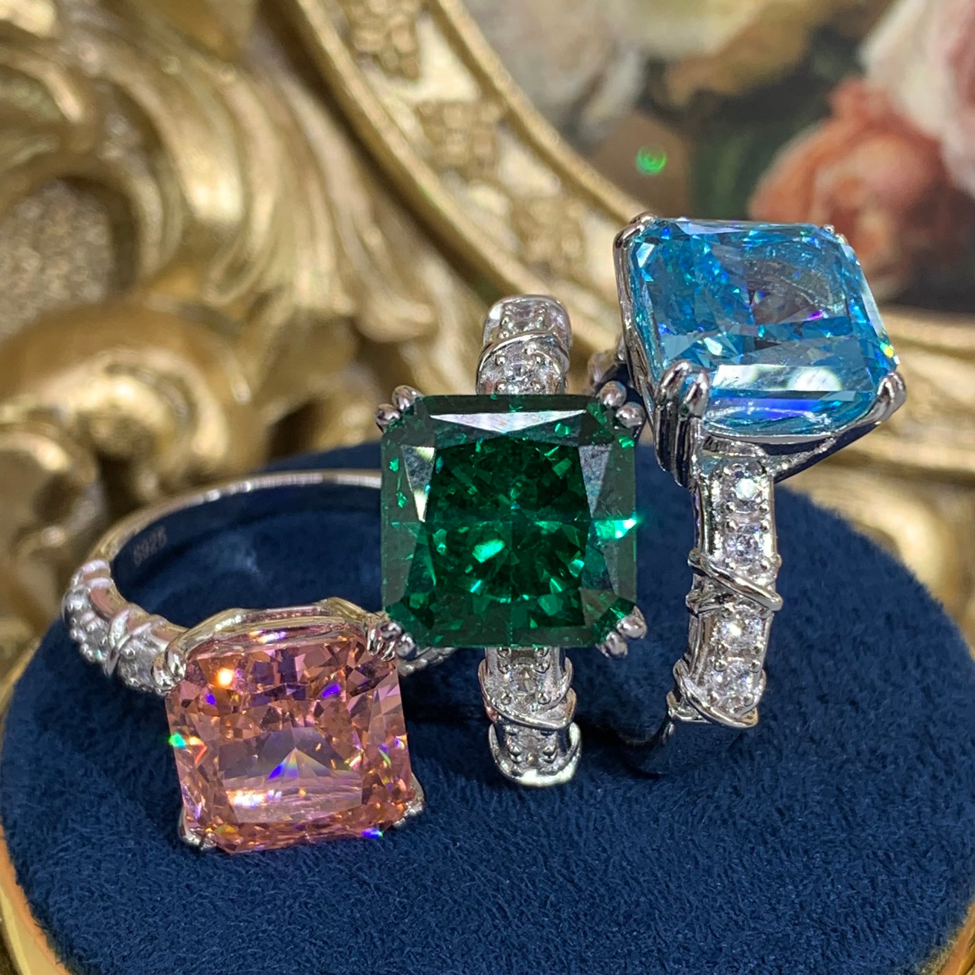 (Suri)「Buy 1 get 1 band ring for free」6CT Artificial Gemstone 925 Sterling Silver Ring