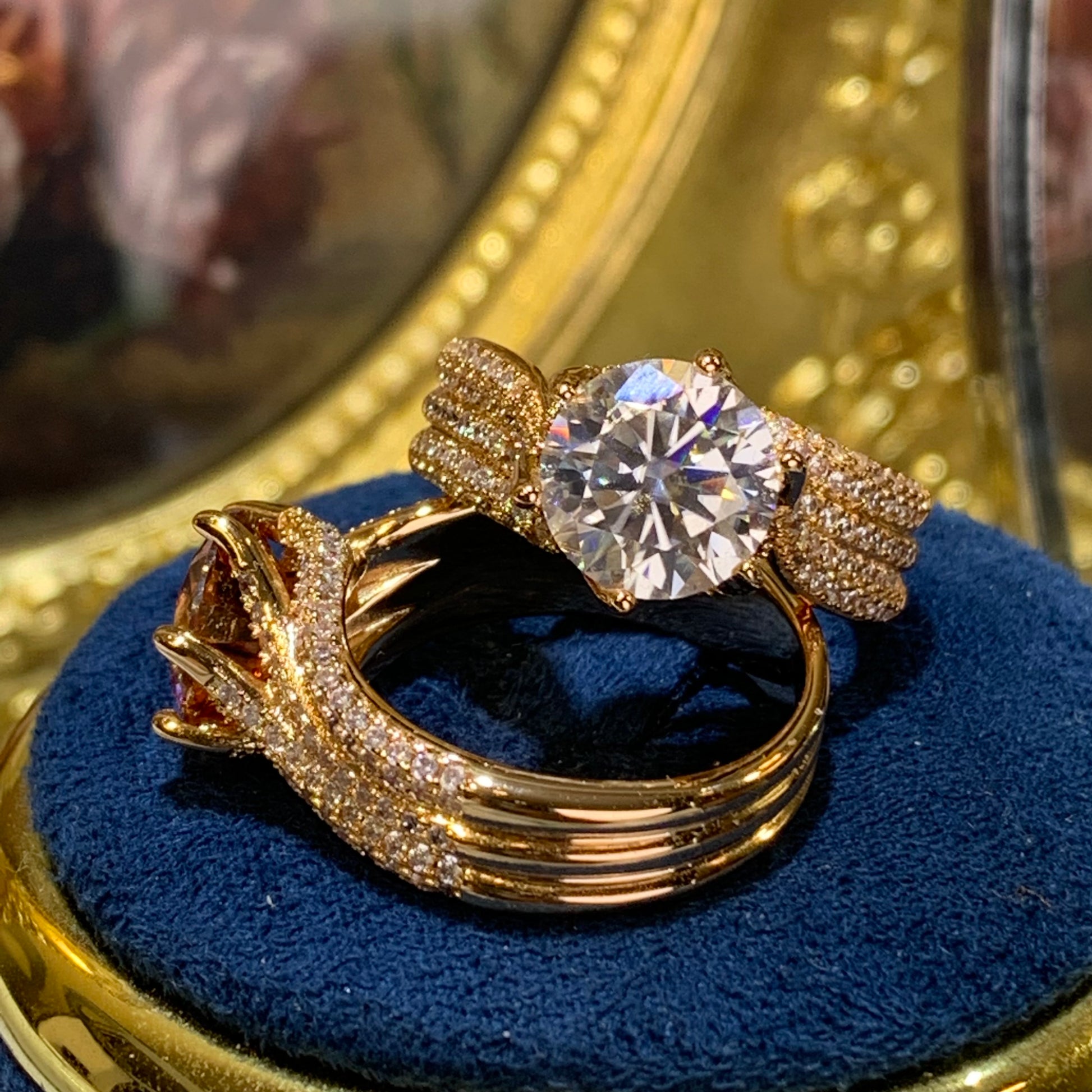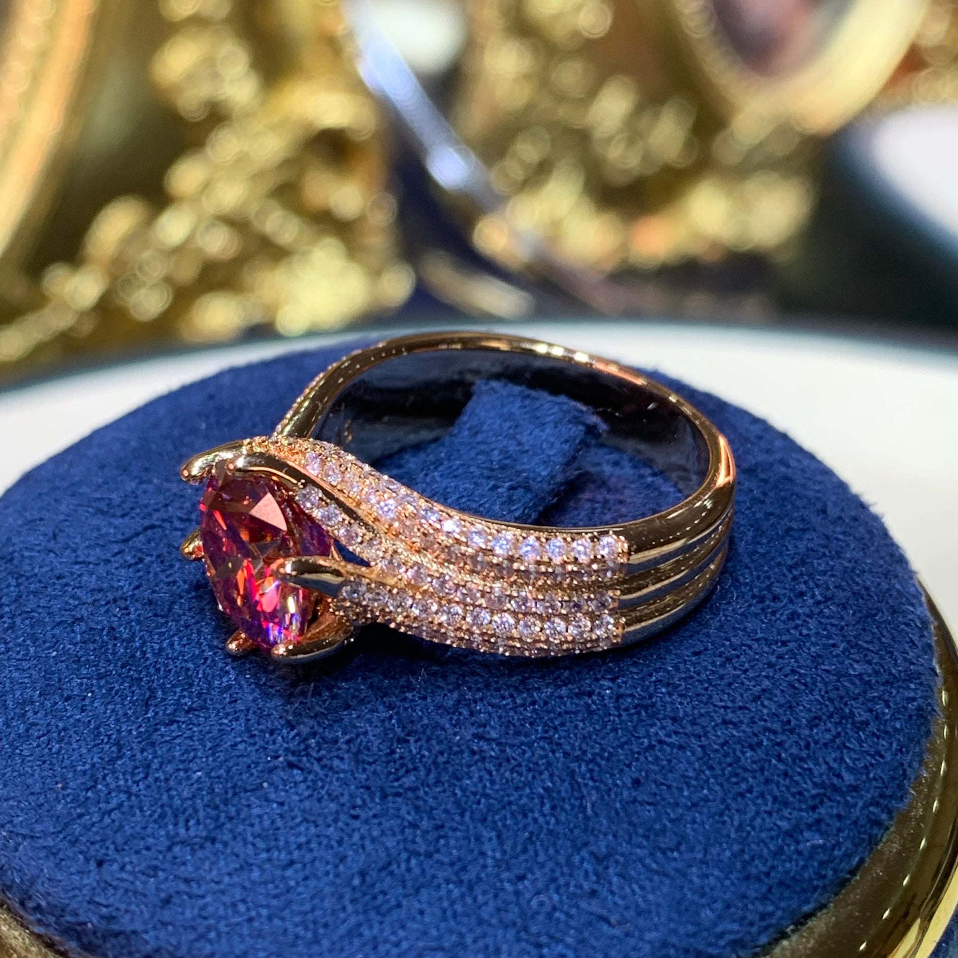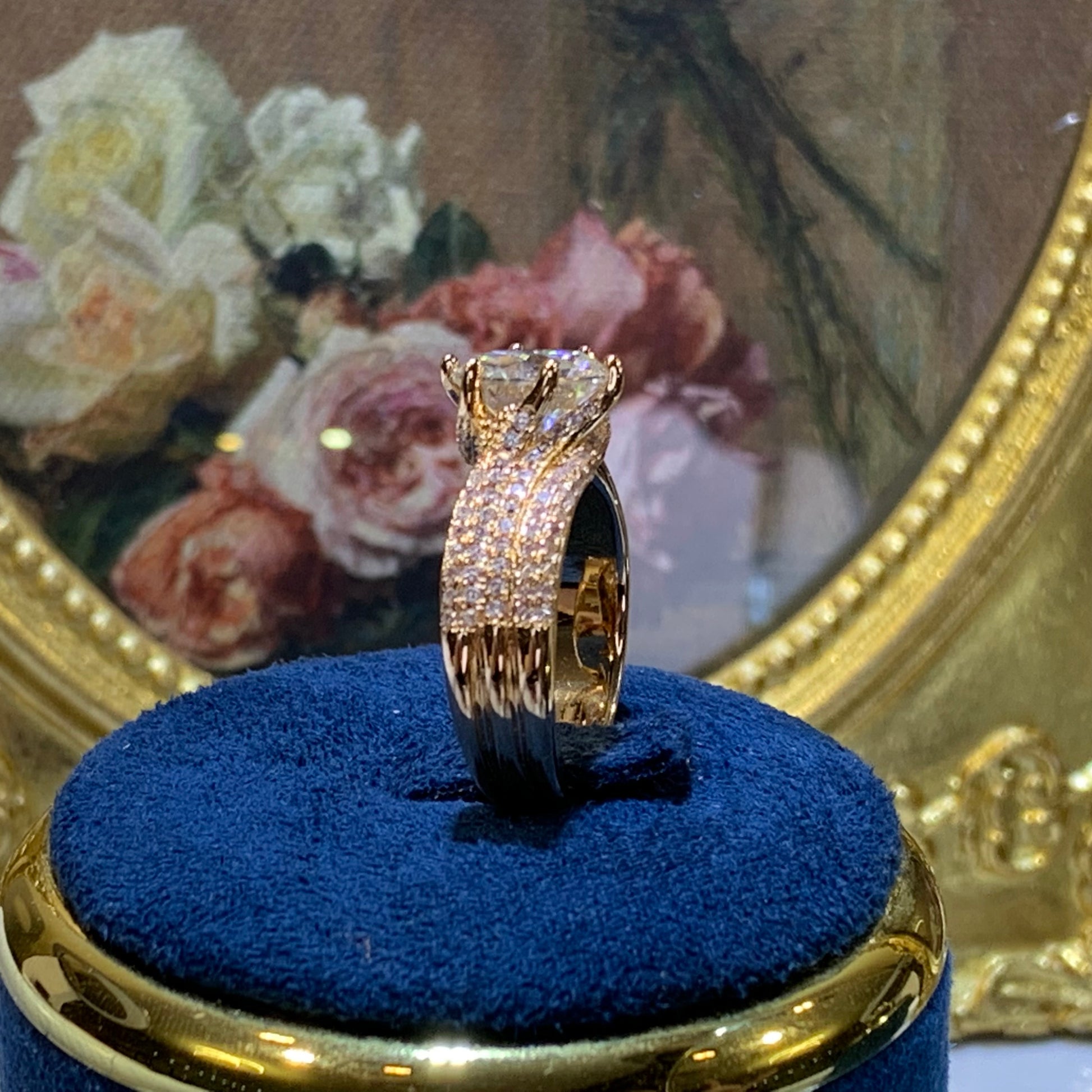 (LIANA) 「Buy 1 get 2 Vshape band ring Or necklace for free」rose gold 18K plated 3 CT Moissanite ring