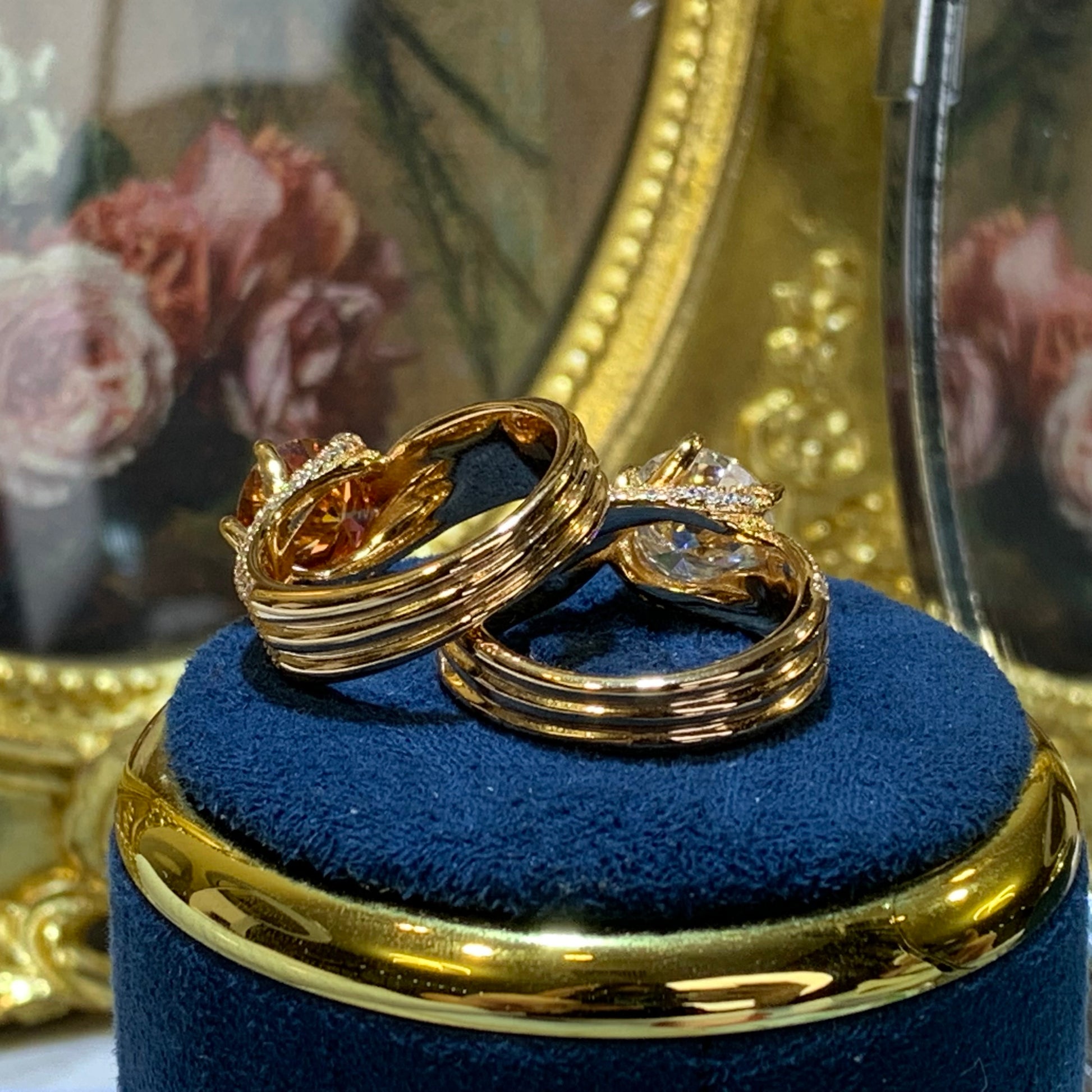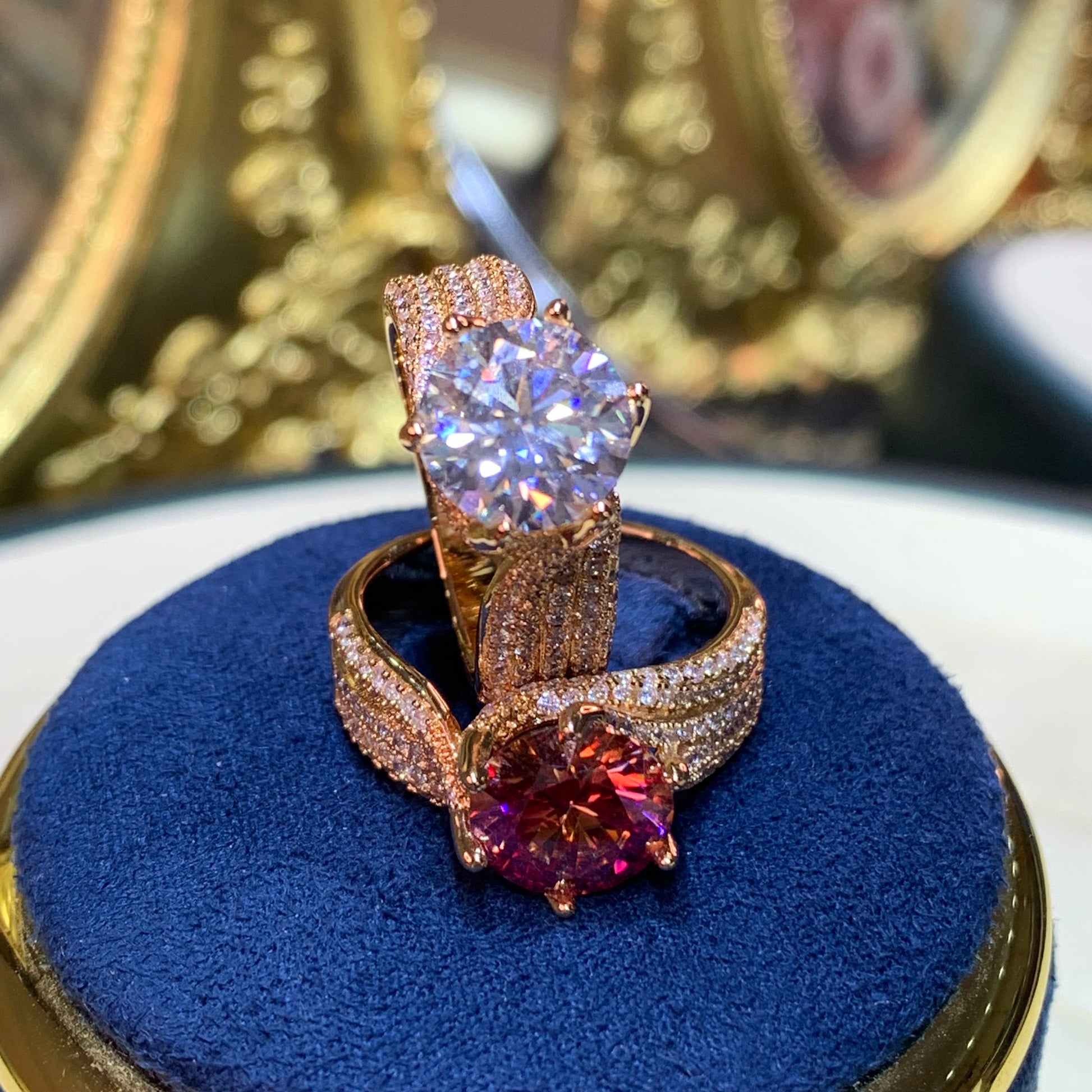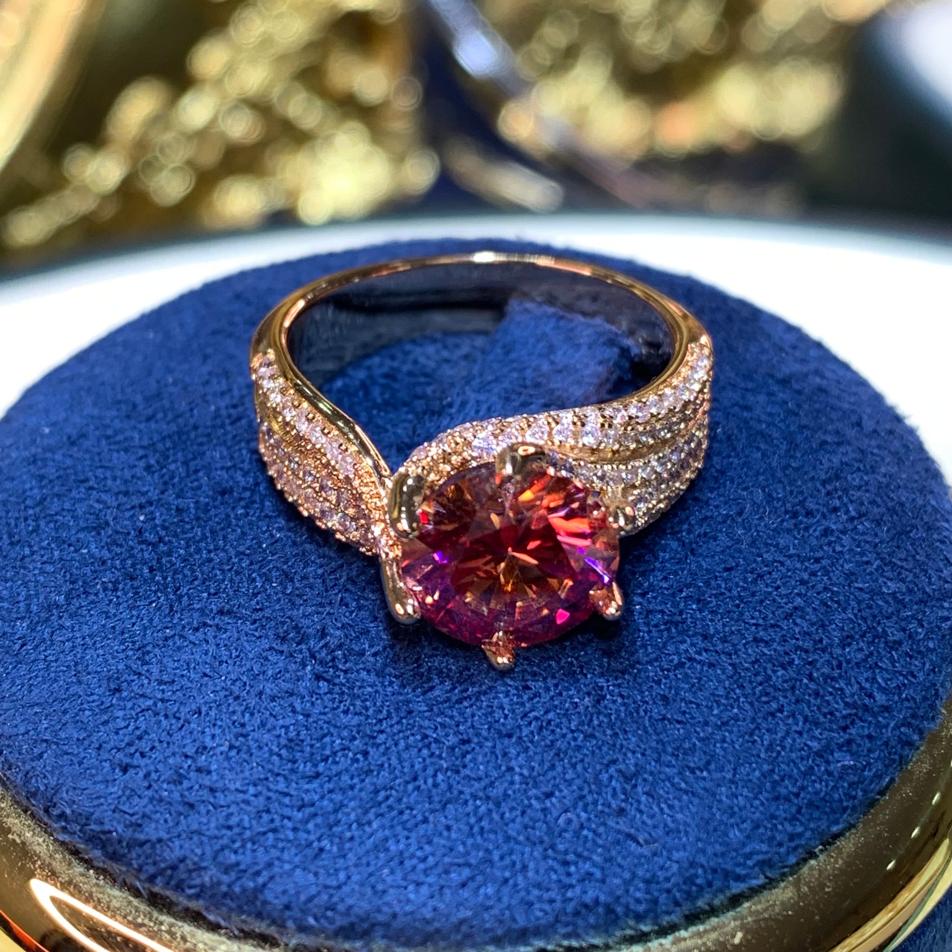 (LIANA) 「Buy 1 get 2 Vshape band ring Or necklace for free」rose gold 18K plated 3 CT Moissanite ring