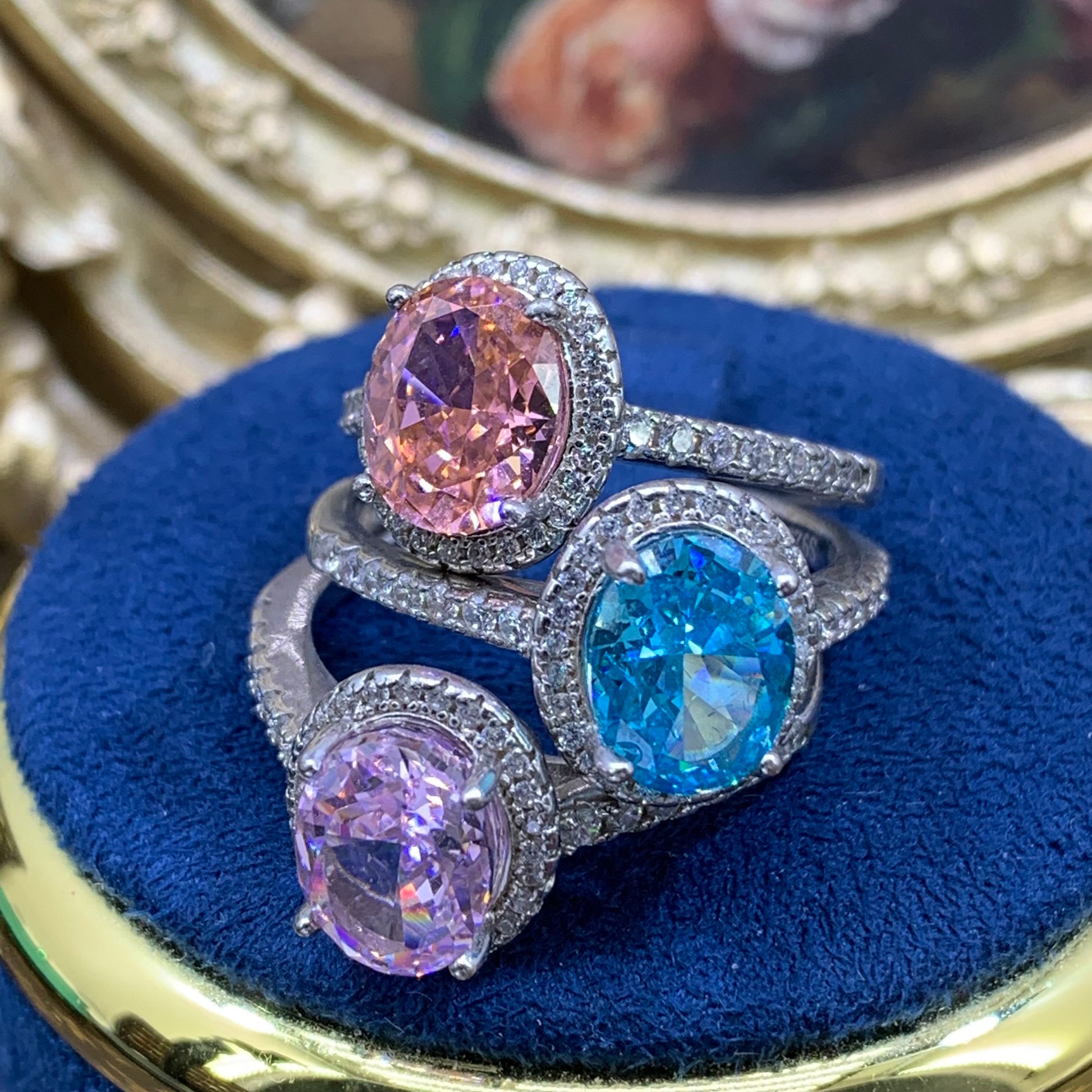 (OLIVIA)「Buy 1 get 1 band ring for free」 3CT Artificial Gemstone 925 Sterling Silver Ring