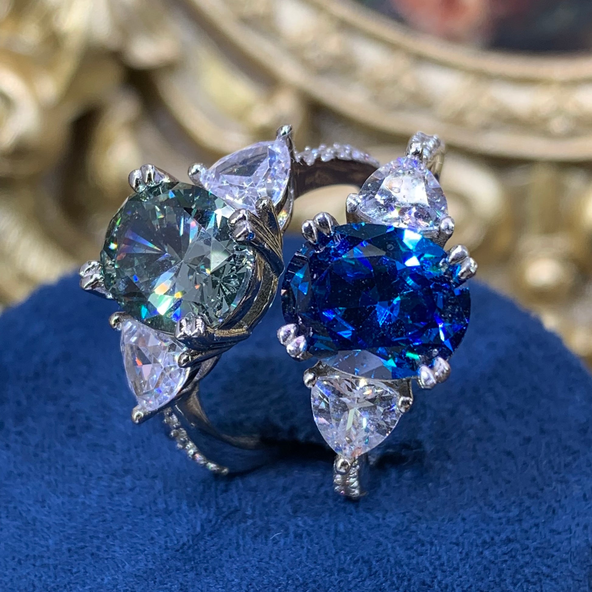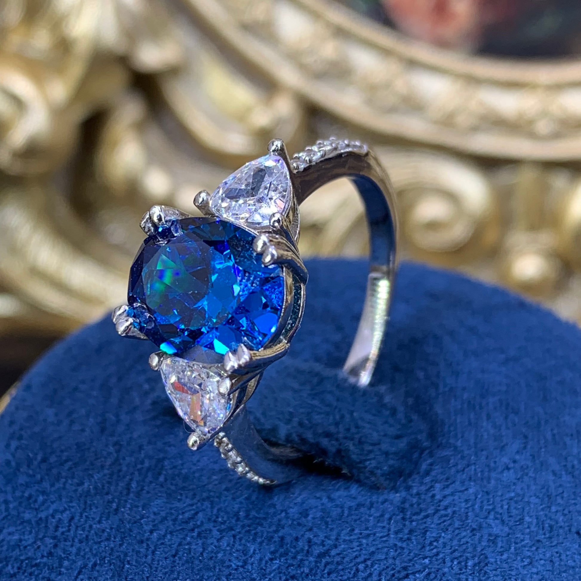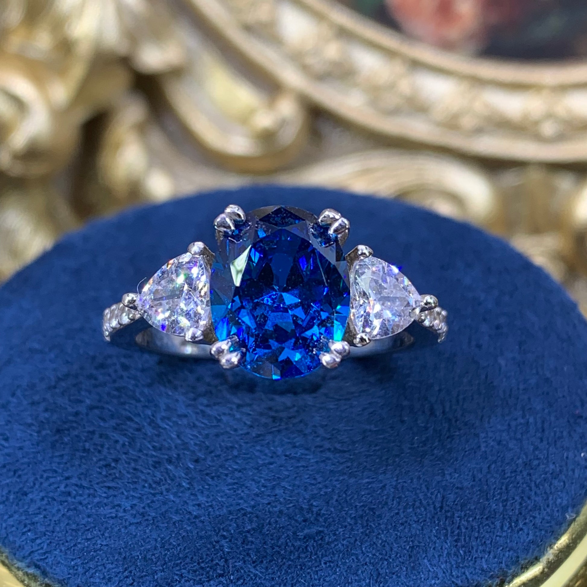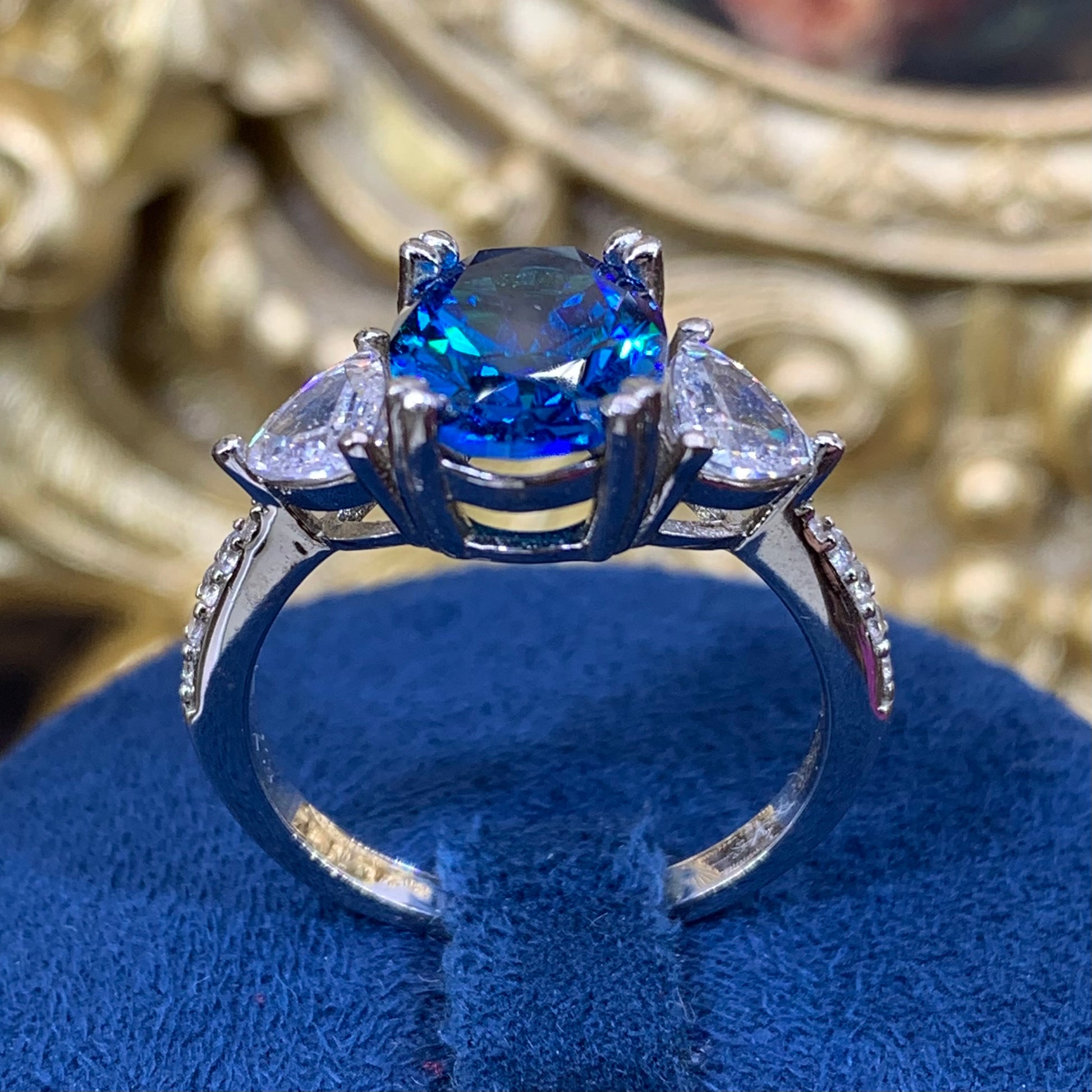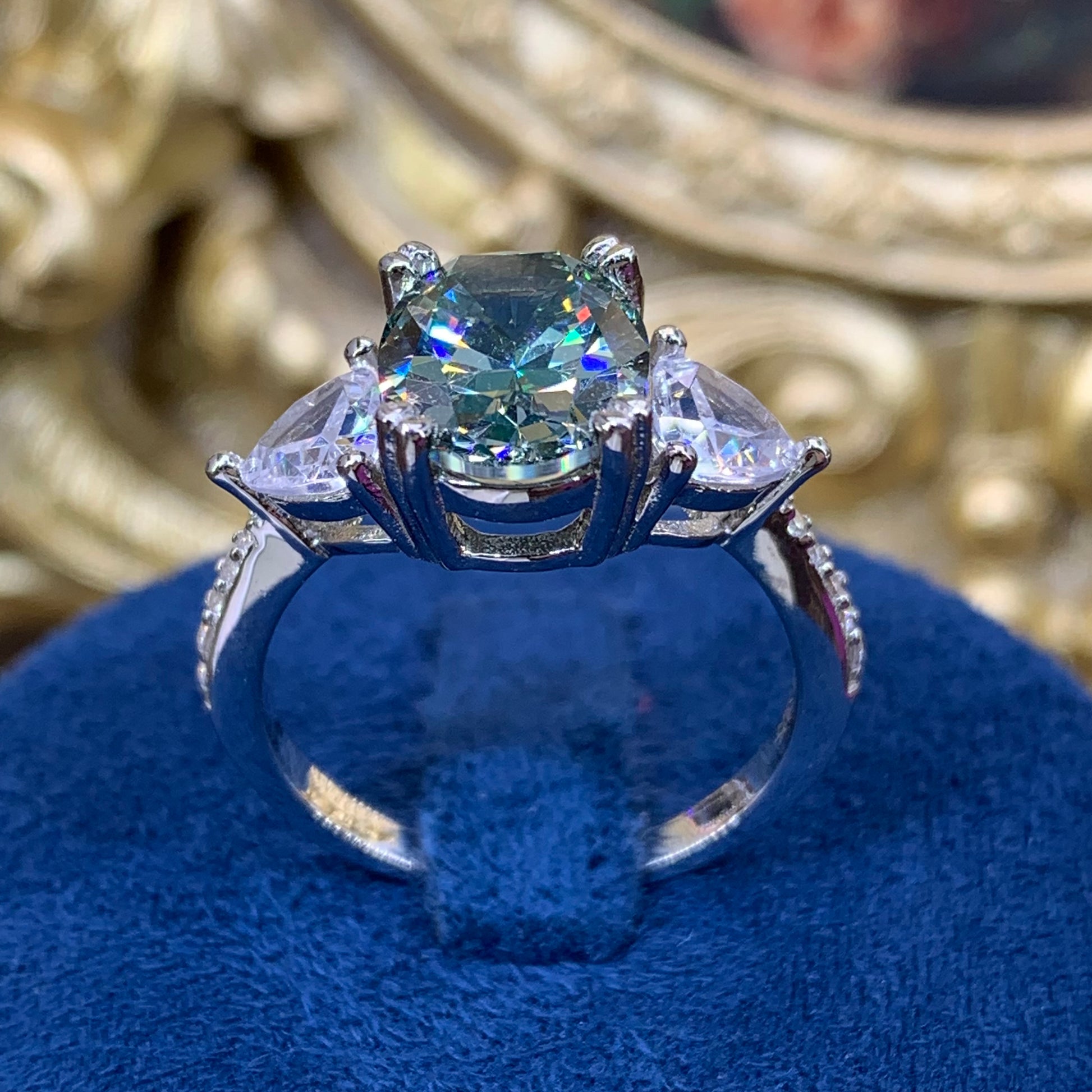 (rebecca)「Buy 1 get 1 Vshape band ring for free」 3CT Artificial Gemstone 925 Sterling Silver Ring
