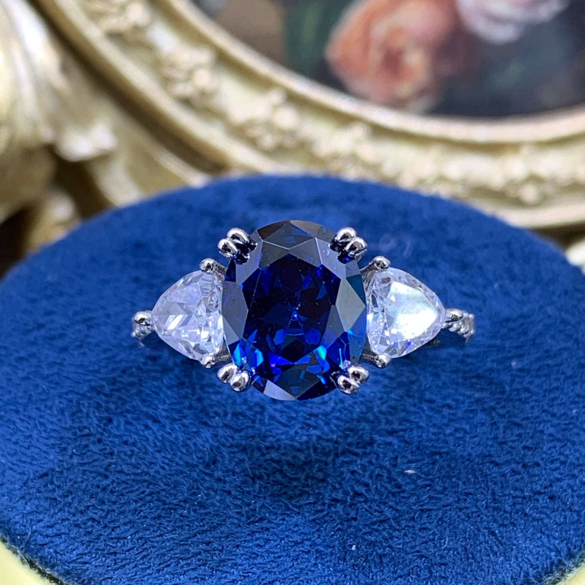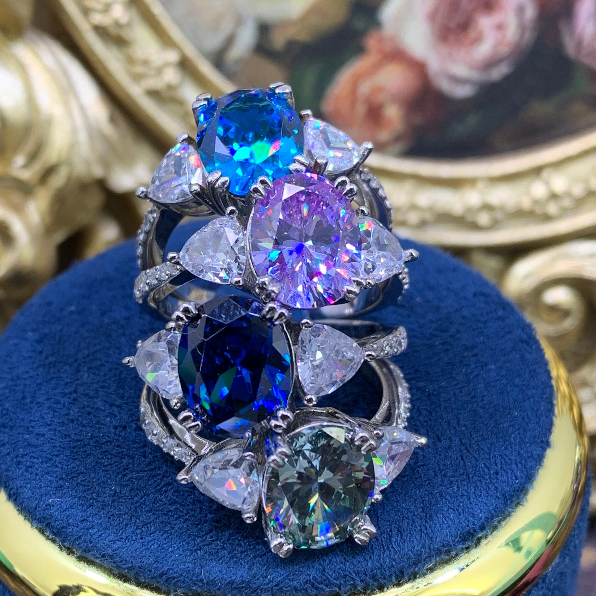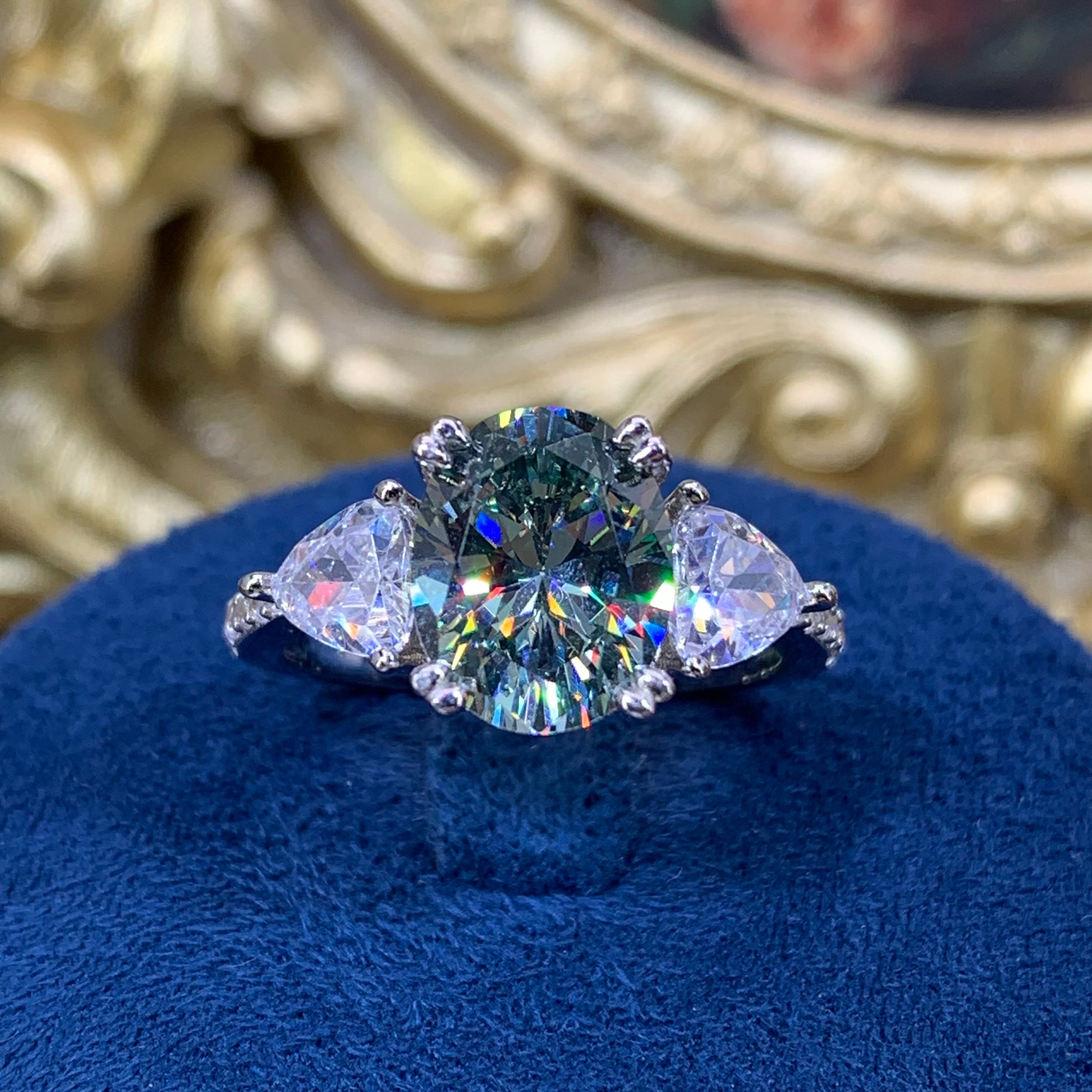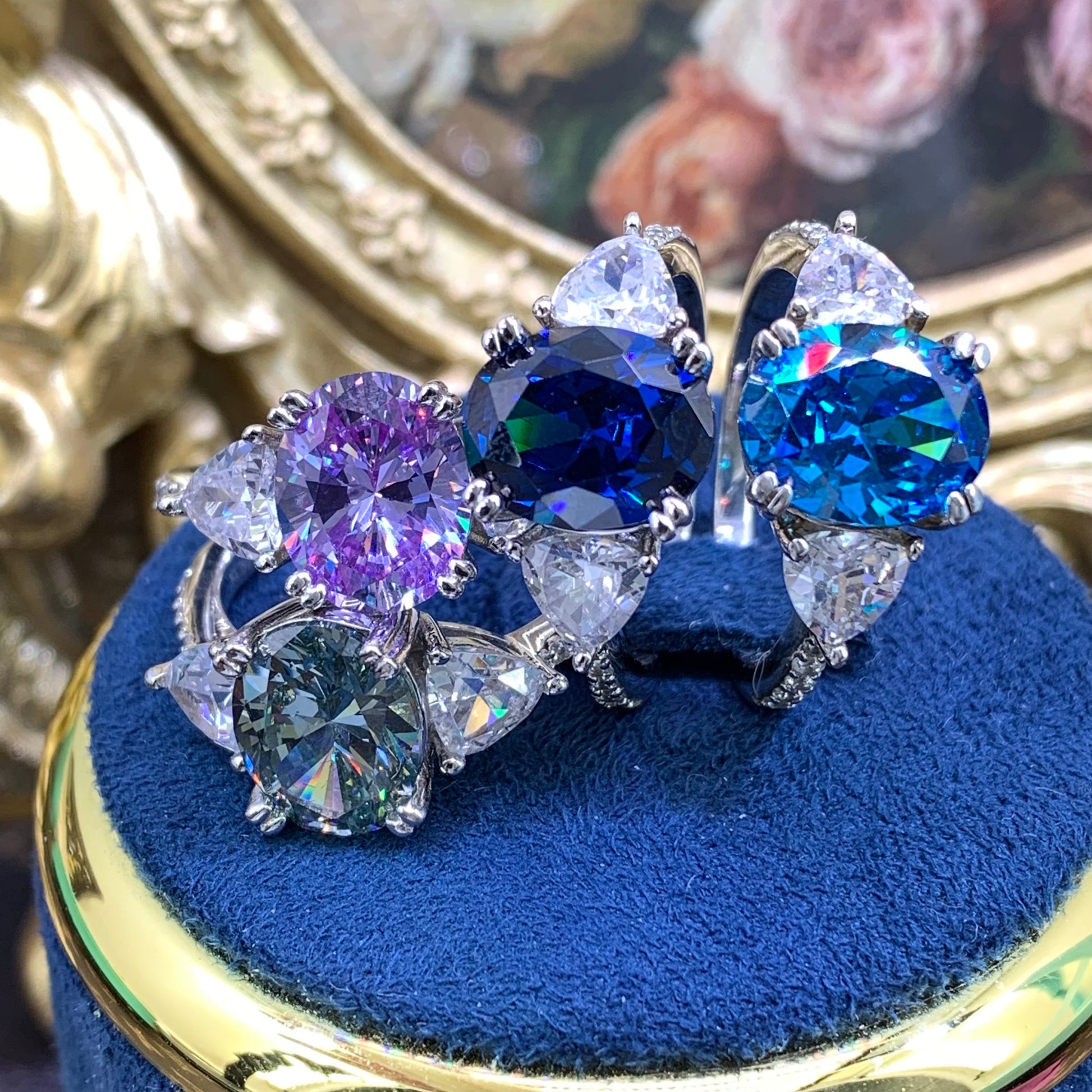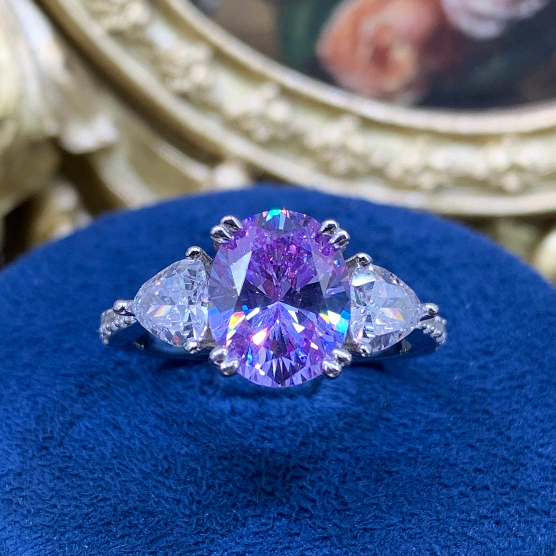 (rebecca)「Buy 1 get 1 Vshape band ring for free」 3CT Artificial Gemstone 925 Sterling Silver Ring