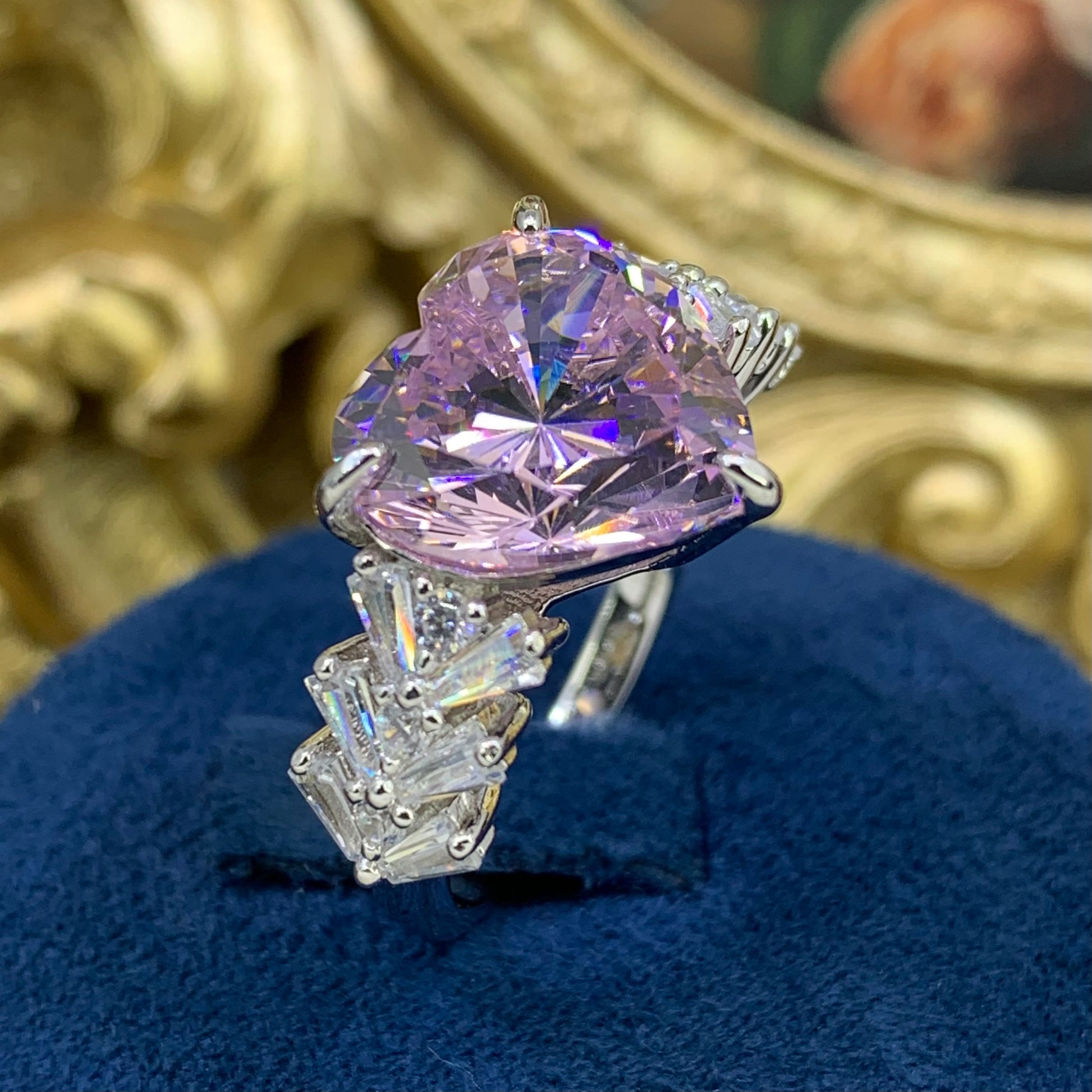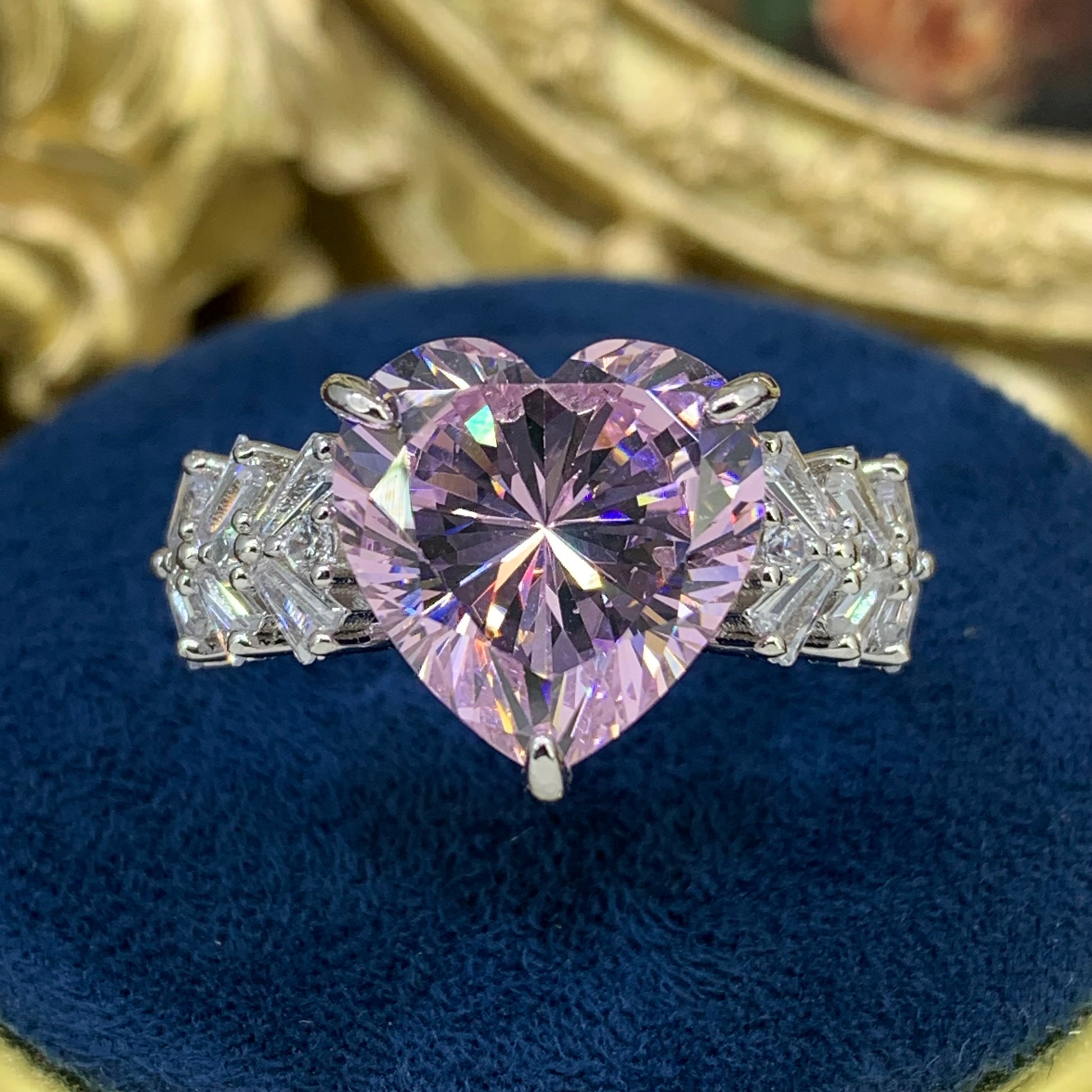 (SOLID)「Buy 1 get 1 heart shape ring for free」 6CT Artificial Gemstone 925 Sterling Silver Ring