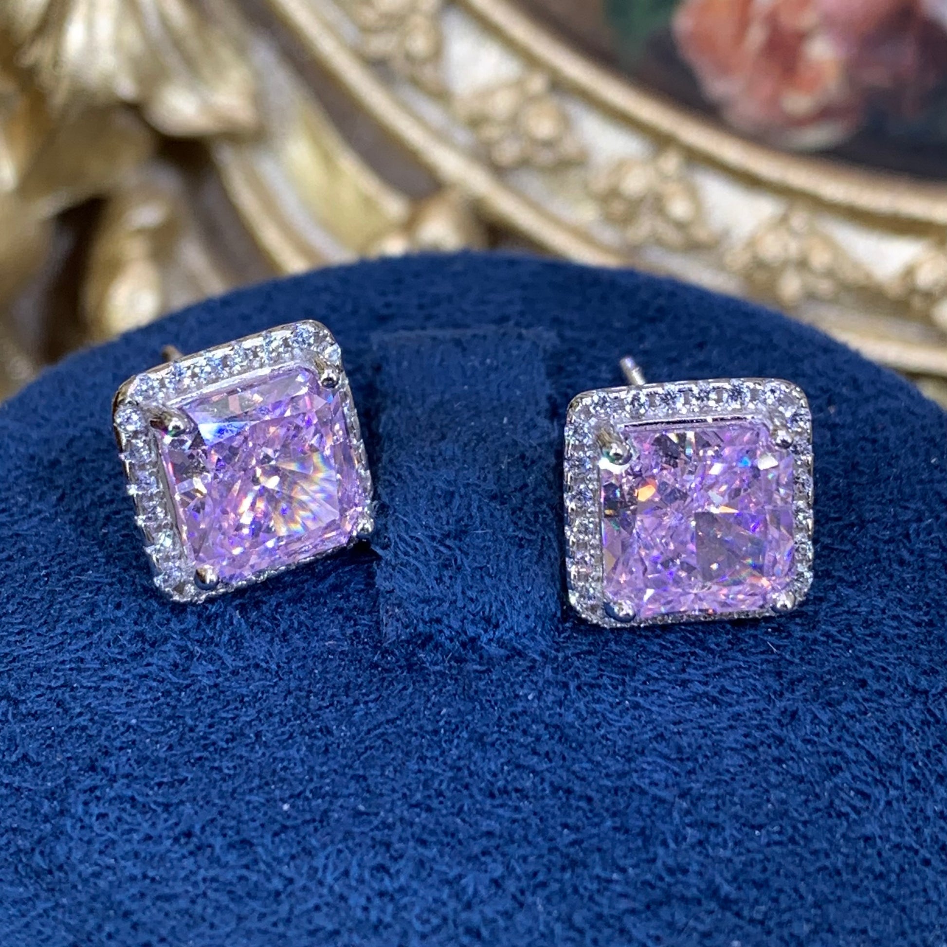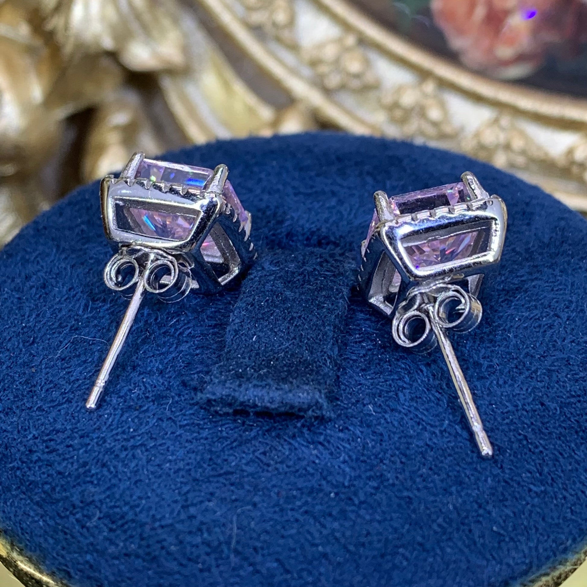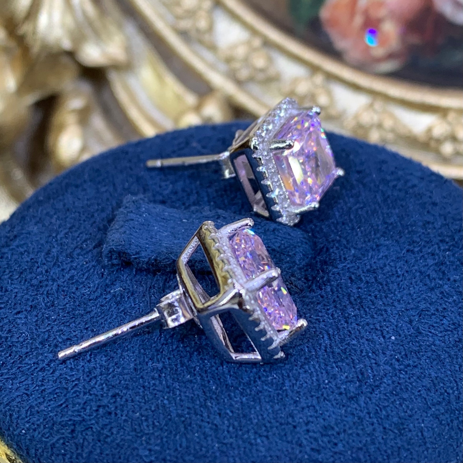 (Square earrings) 4CT Cube zircon gemstone 925 Sterling Silver