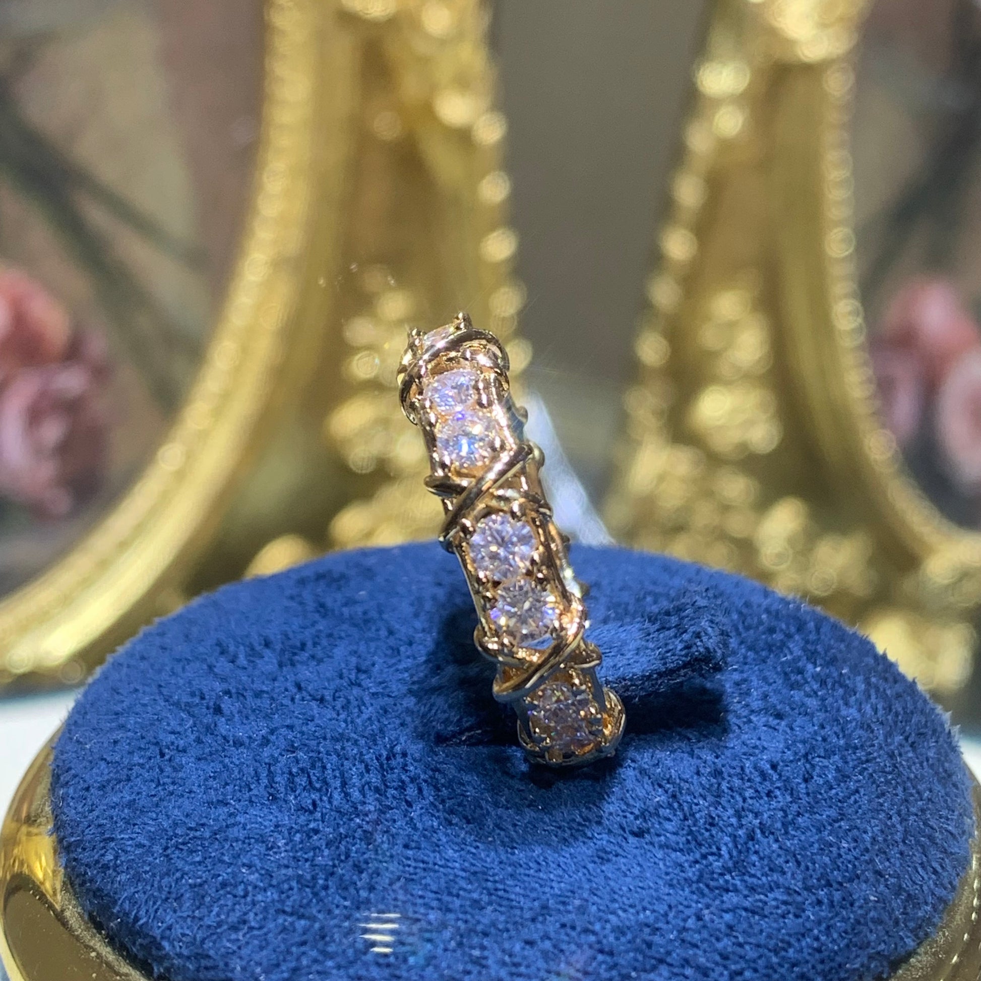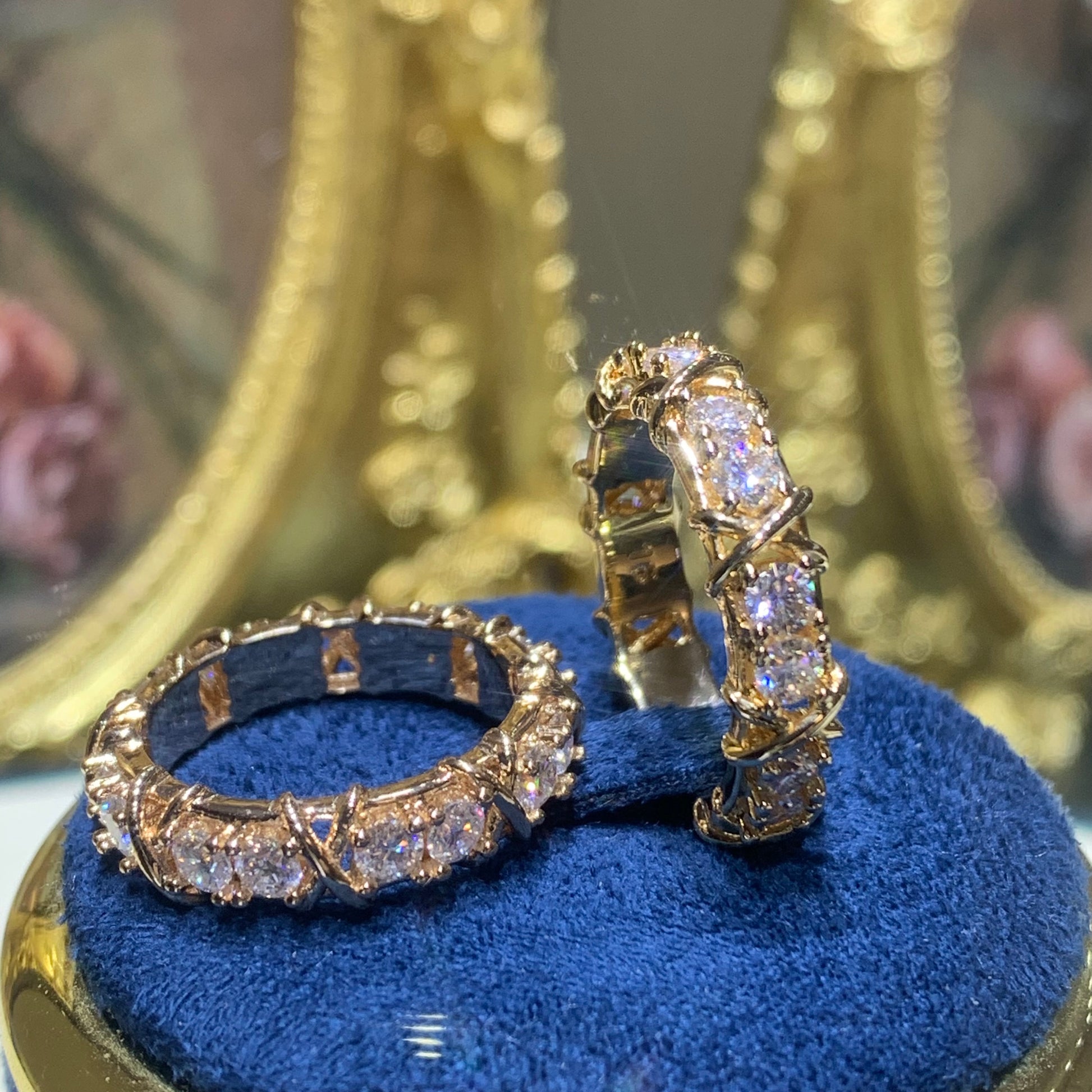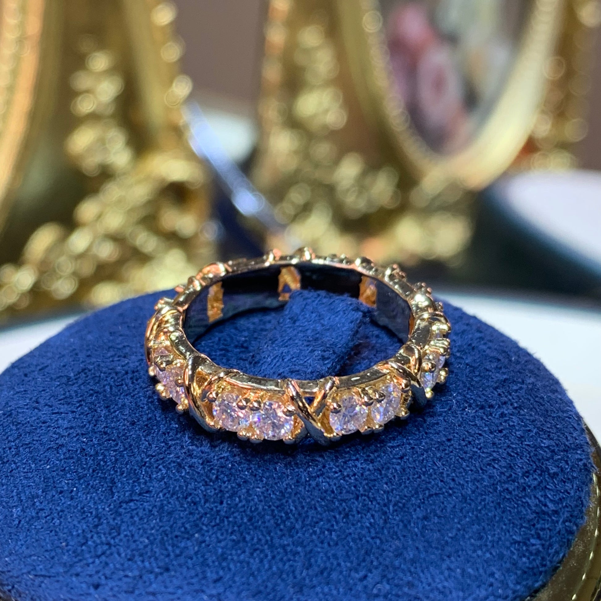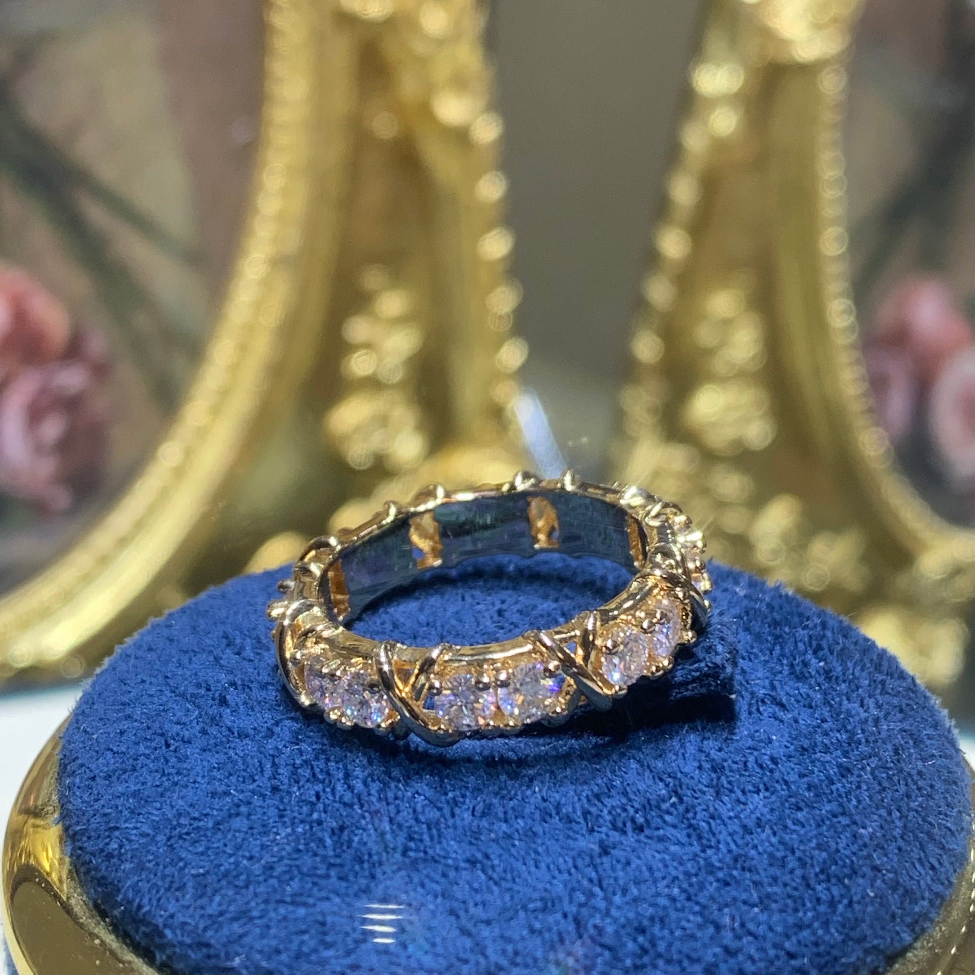 (XO)「Buy 1 get 1 Vshape band ring for free」 yellow gold 18K plated 3.5CT Moissanite gemstone ring