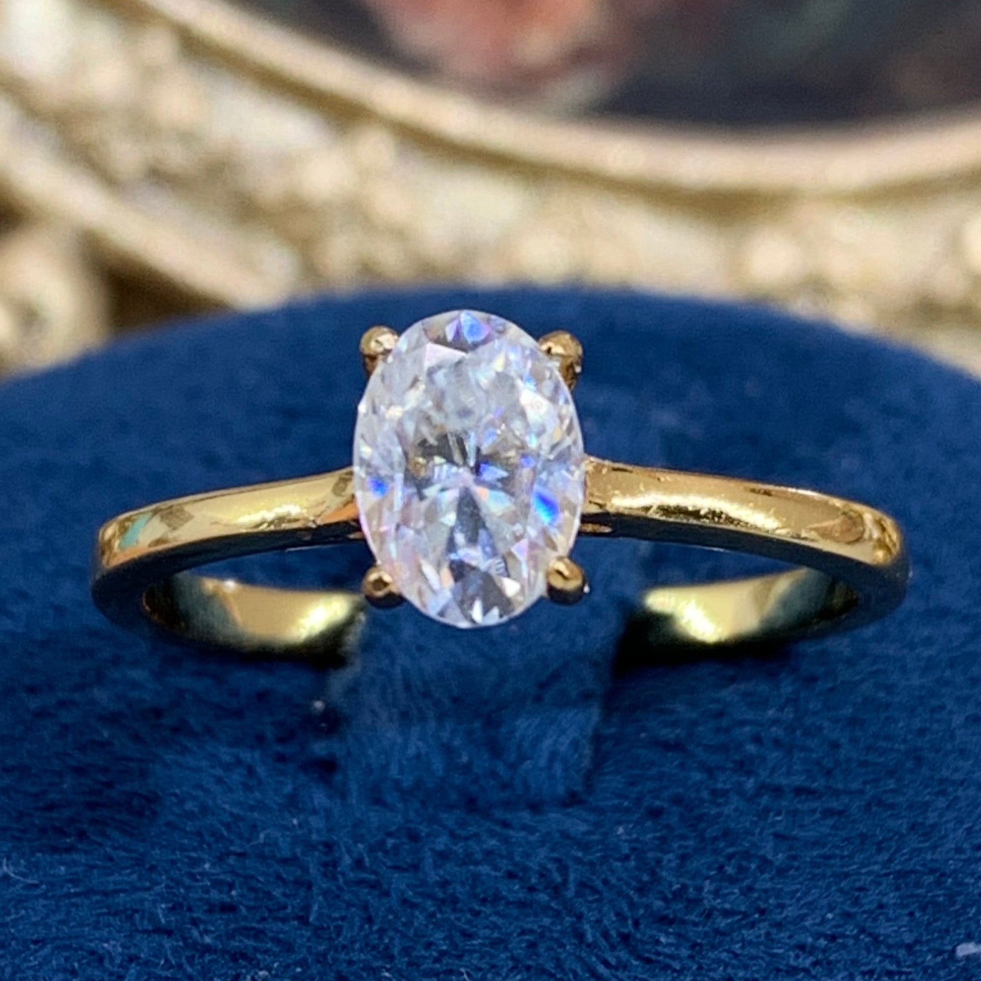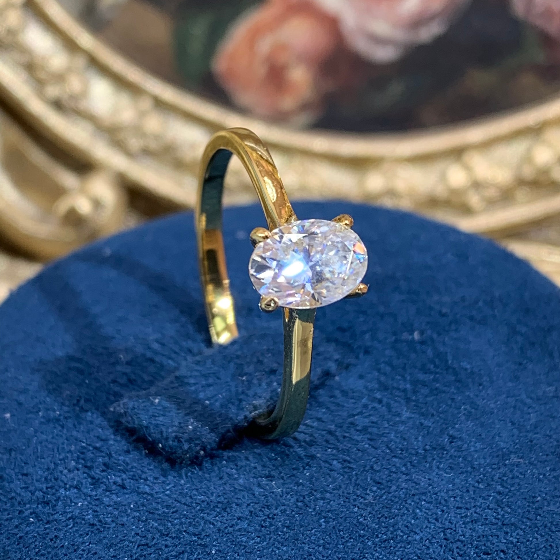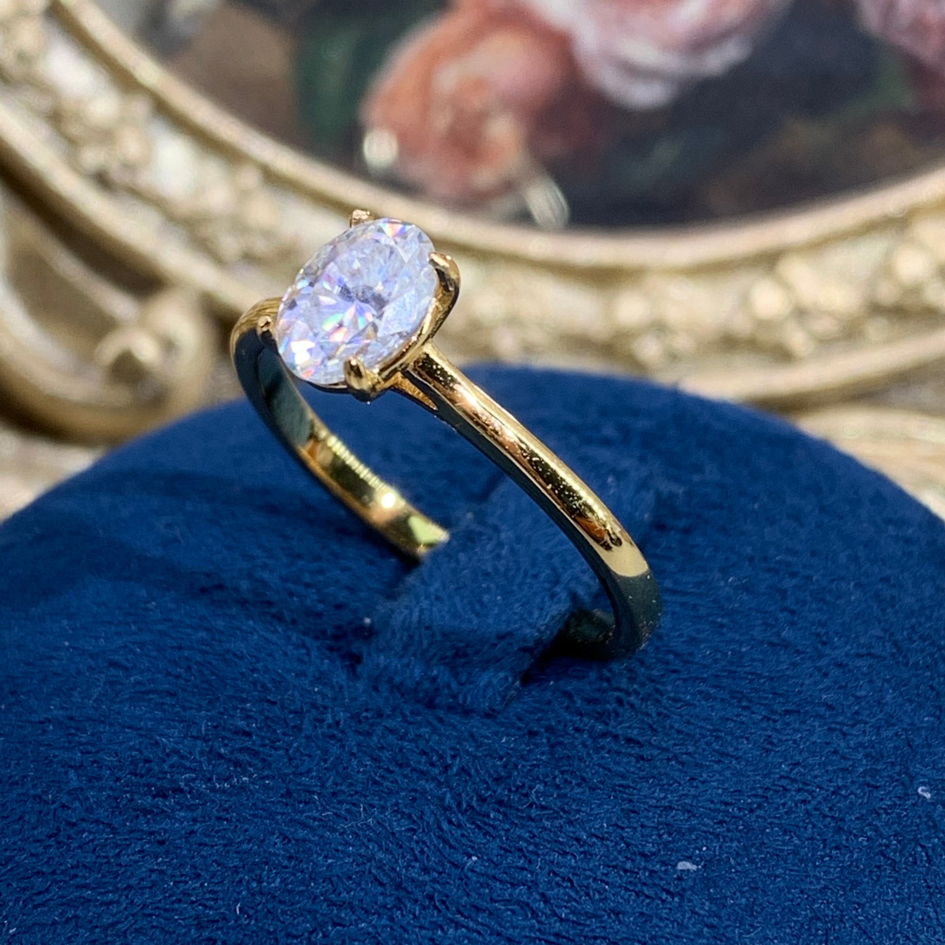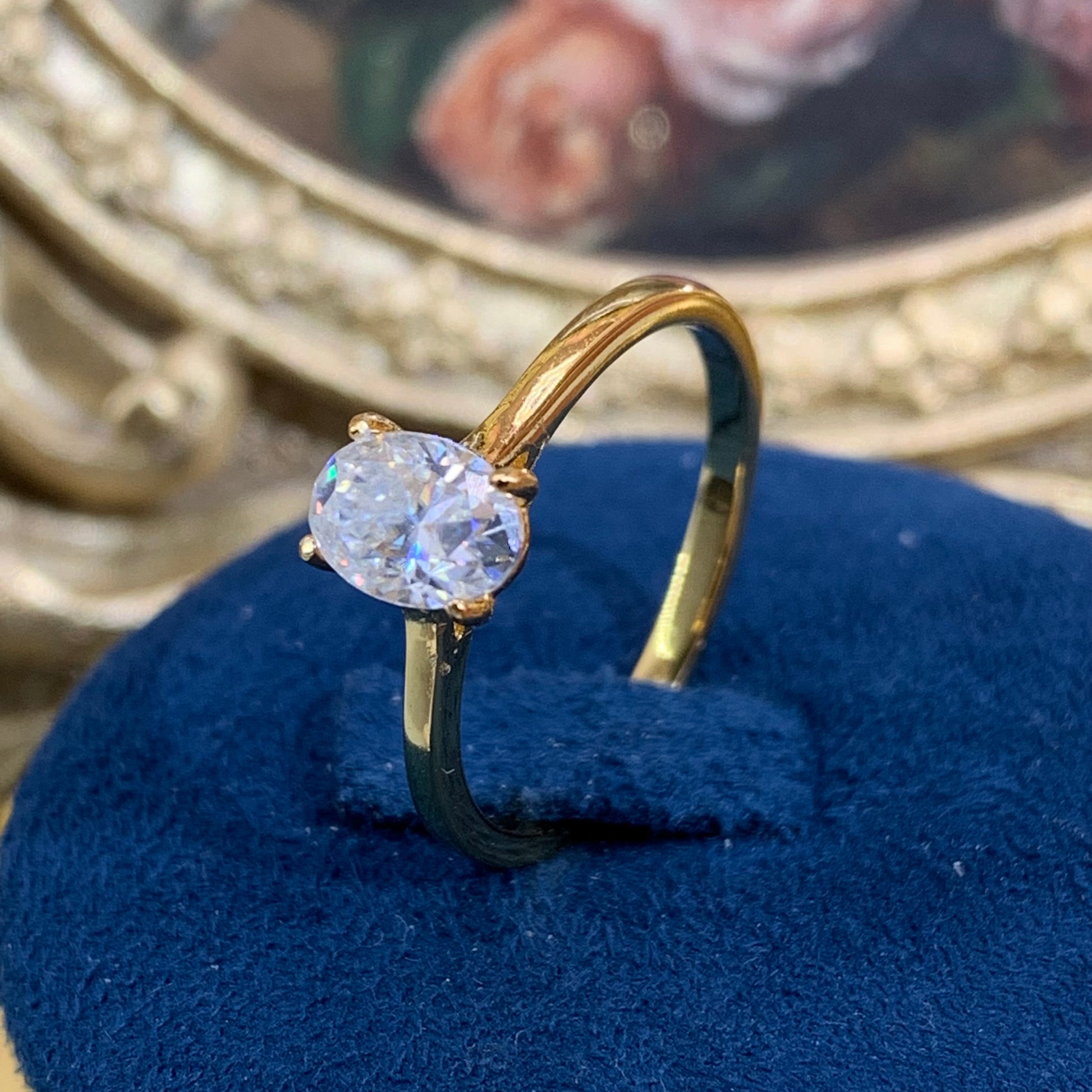 (Mia) 「Buy 1 get 1 band ring for free」yellow gold 18K plated 1CT Moissanite gemstone ring